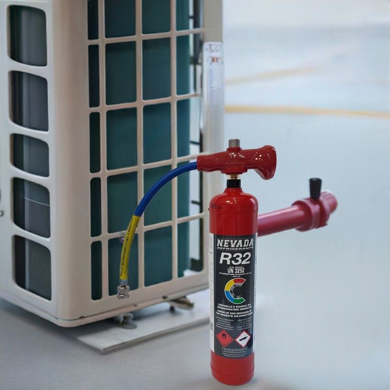 Kältemittel R32 1,0L 780g mit Füllschlauch & Manometer, für Klimaanlage & Wärmepumpen