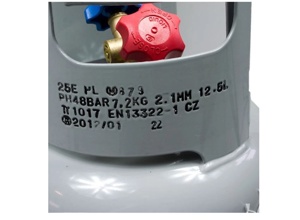 Kältemittelflasche, Recyclingflasche, Leerflasche 12,5L mit Doppelventil 1/4 SAE