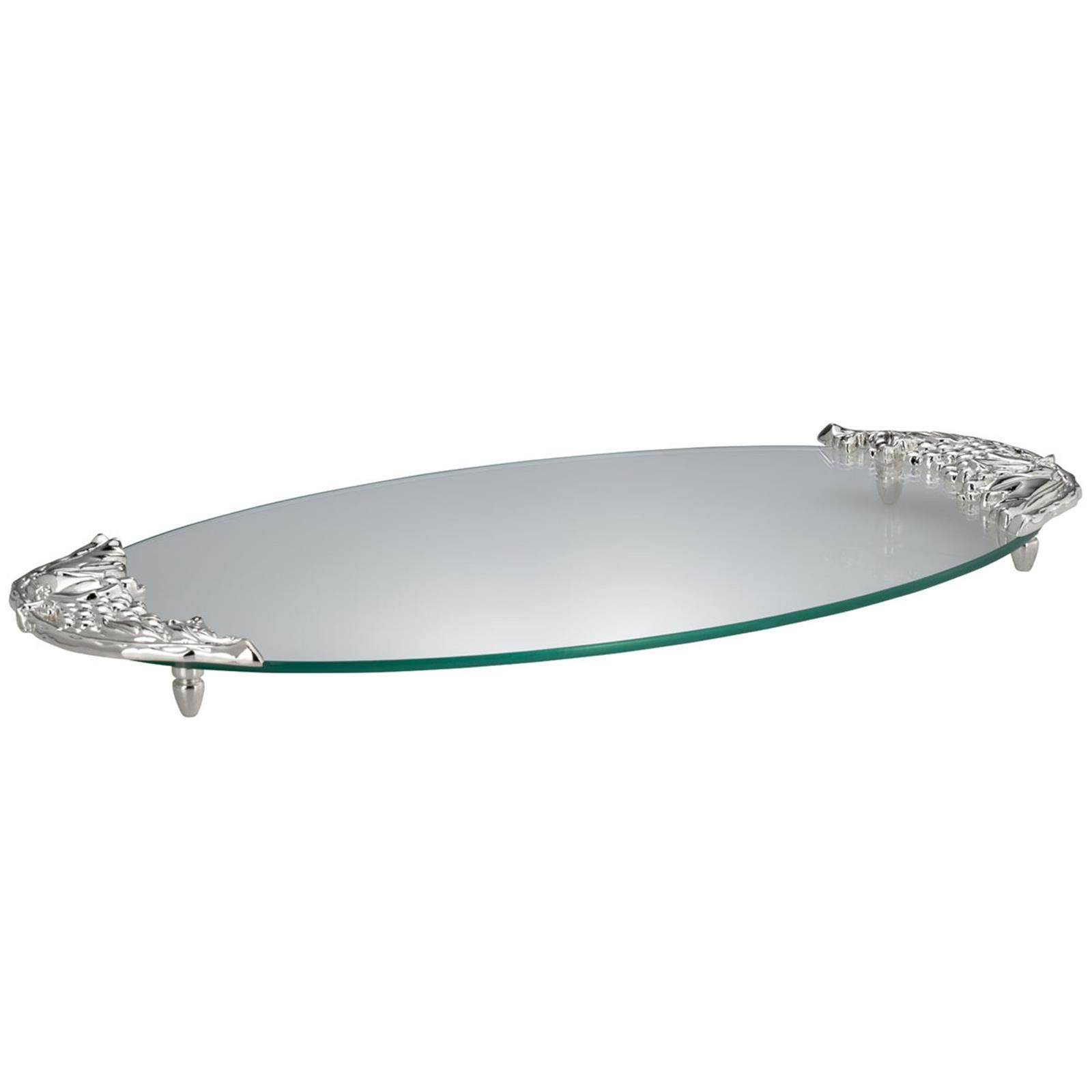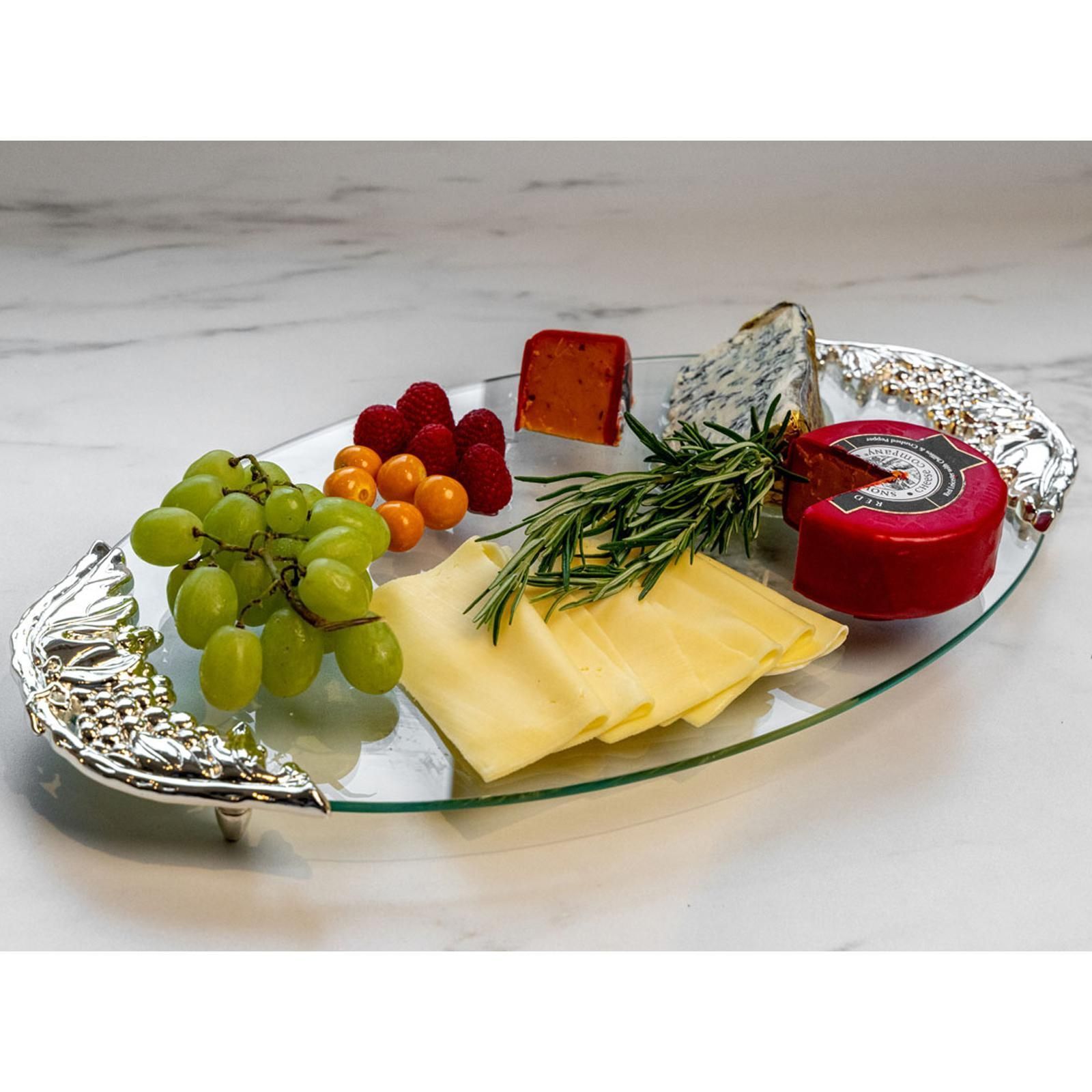 Käseplatte 46x25 cm oval versilbert Glas Servierplatte & Standfüße Buffet Platte