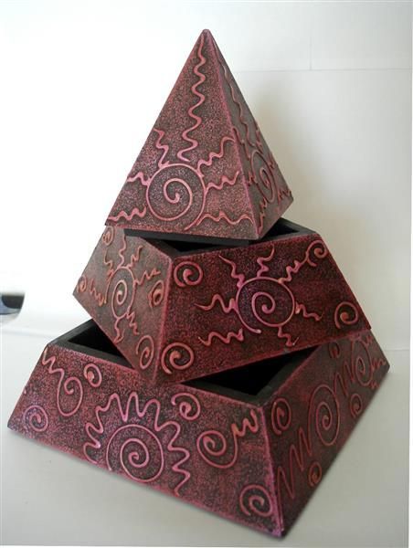 Kästchen Pyramide Holz 2 Fächer 20 x 15 x 15 cm Handgearbeitet 1 kg Schatulle