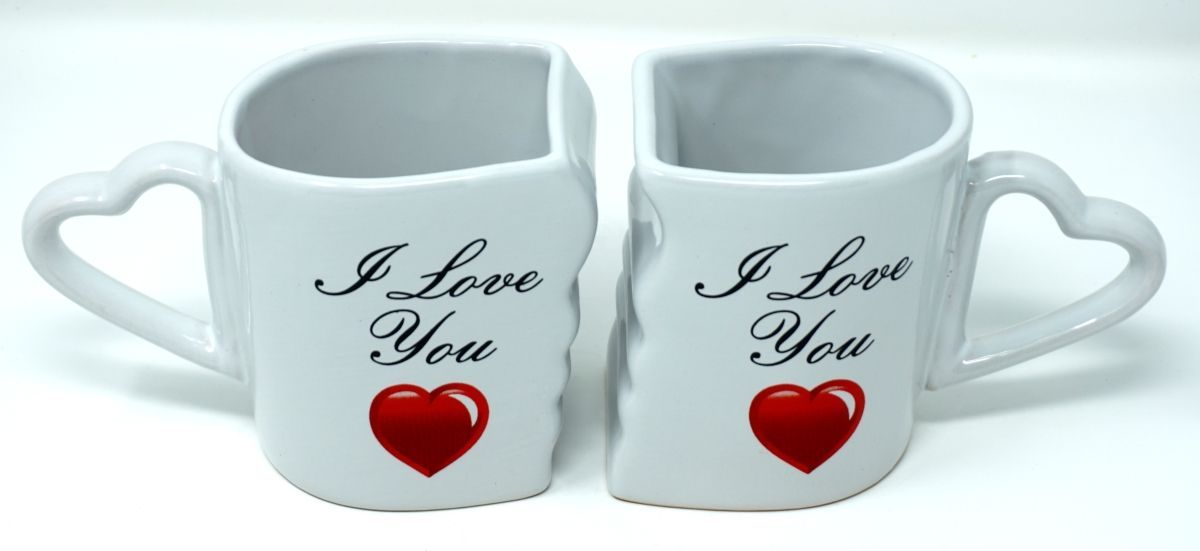 Kaffee Tasse Set für Paare I Love you mit Herz Henkel Partnertasse aus Steingut