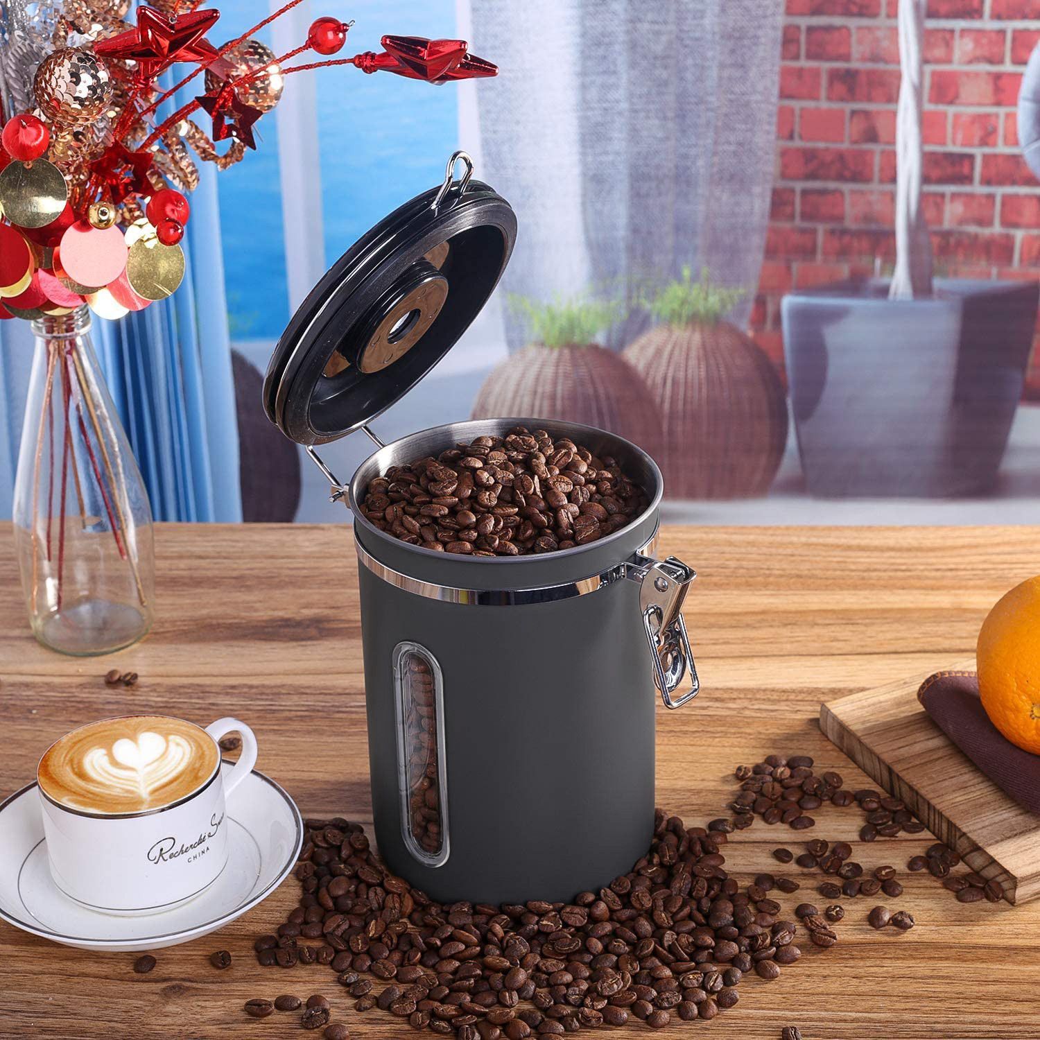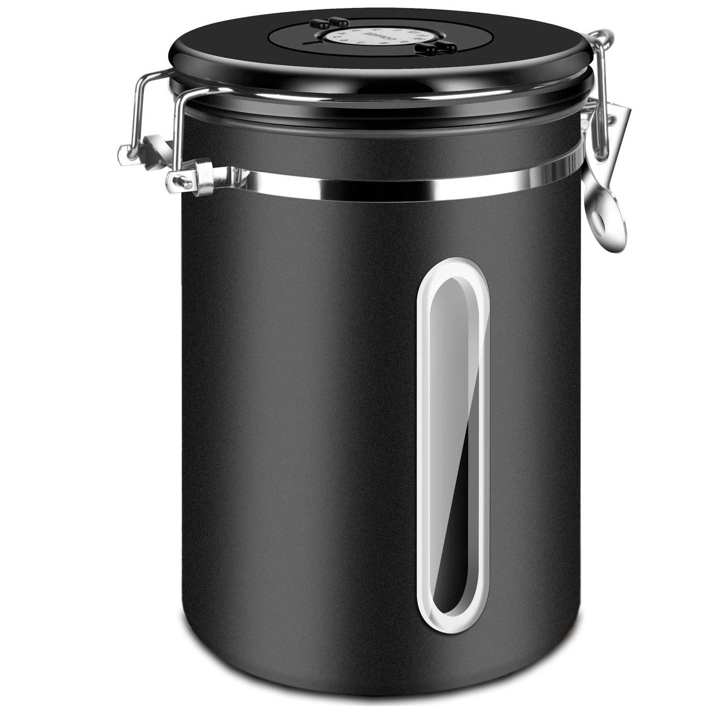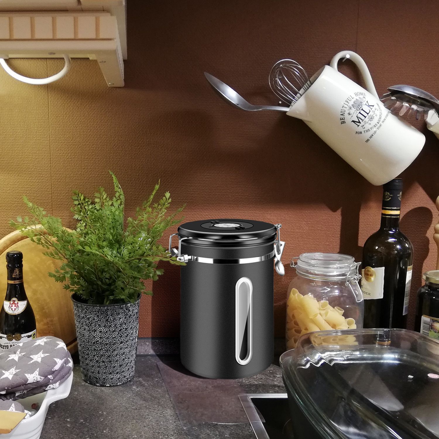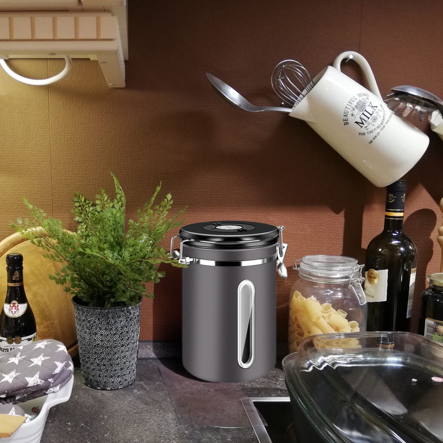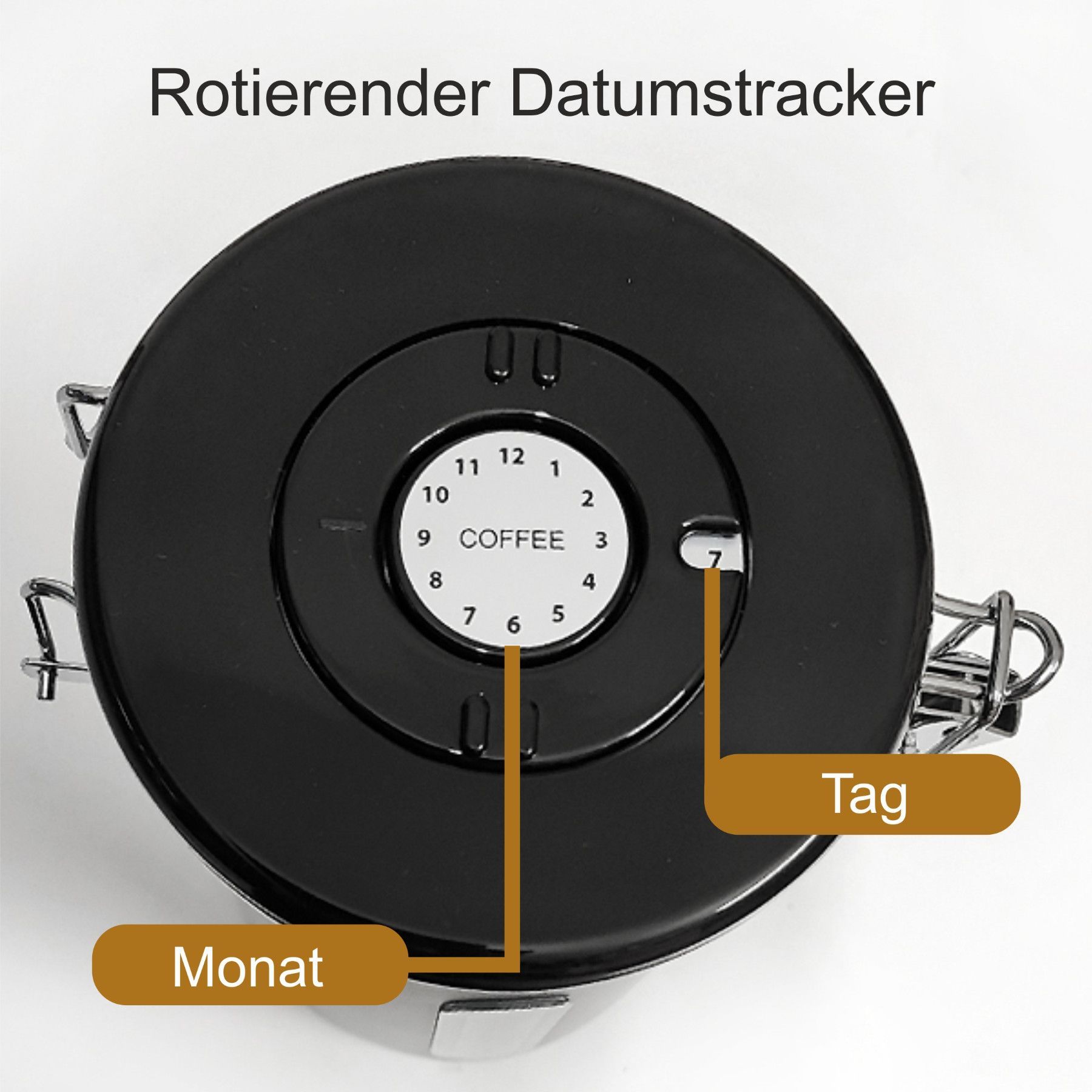 Kaffeedose 304 Edelstahl 1,8L Datums-Tracker Fenster luftdichter: schwarz/grau