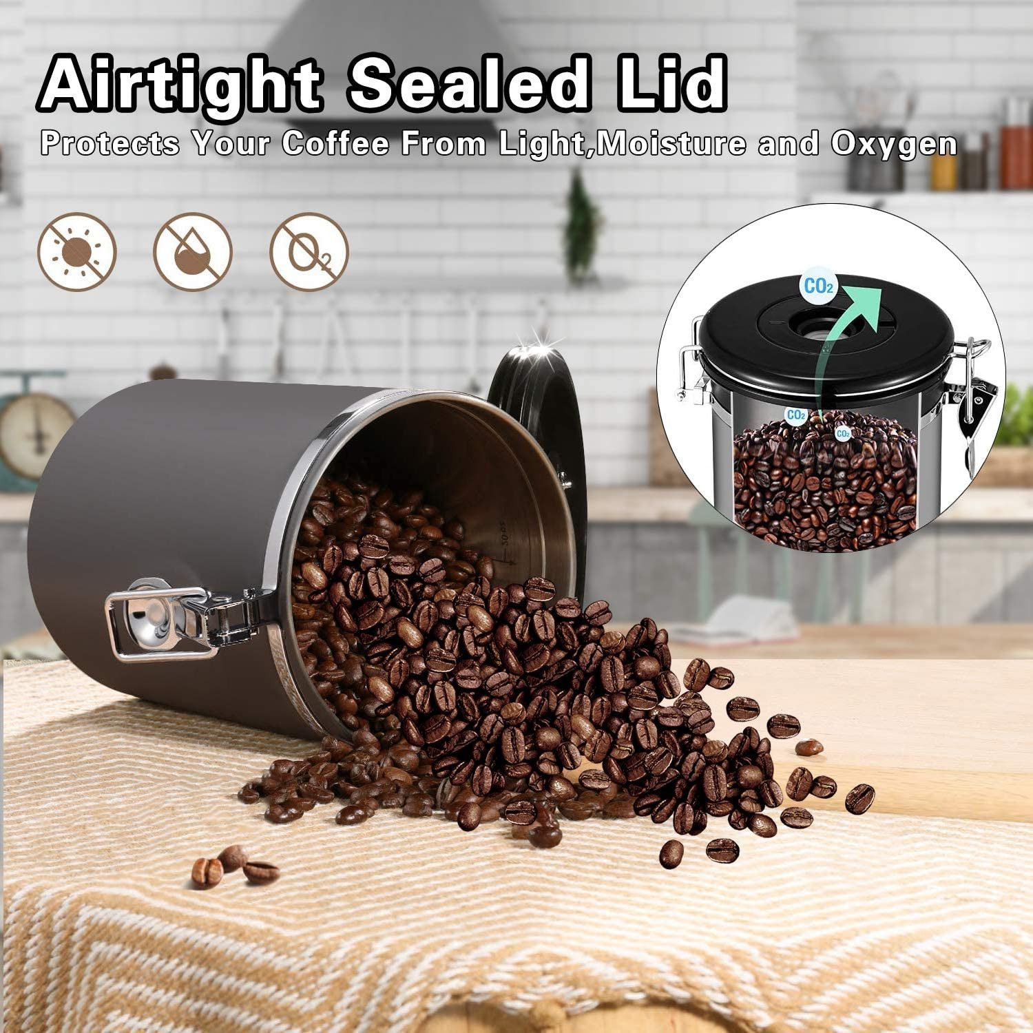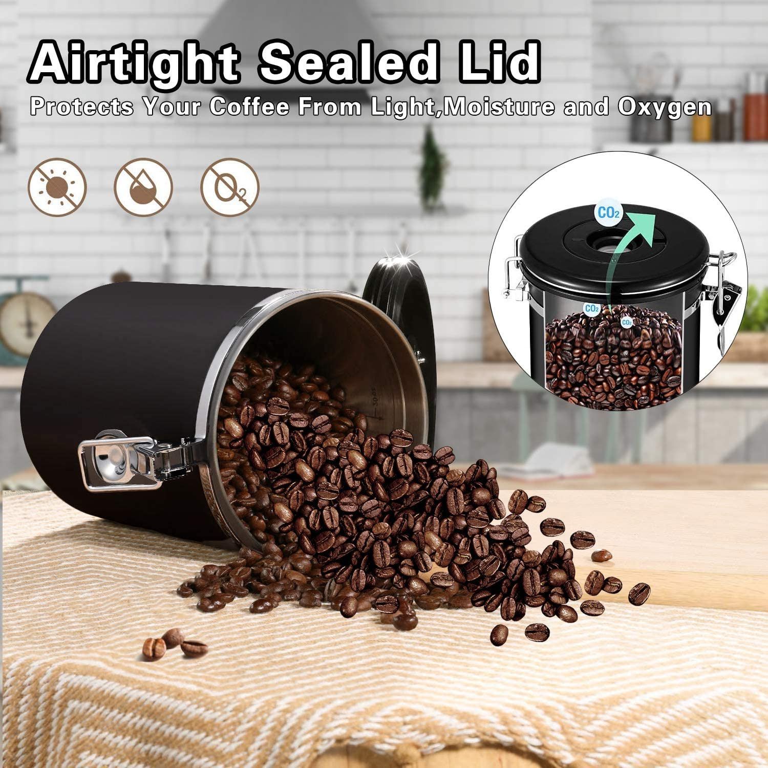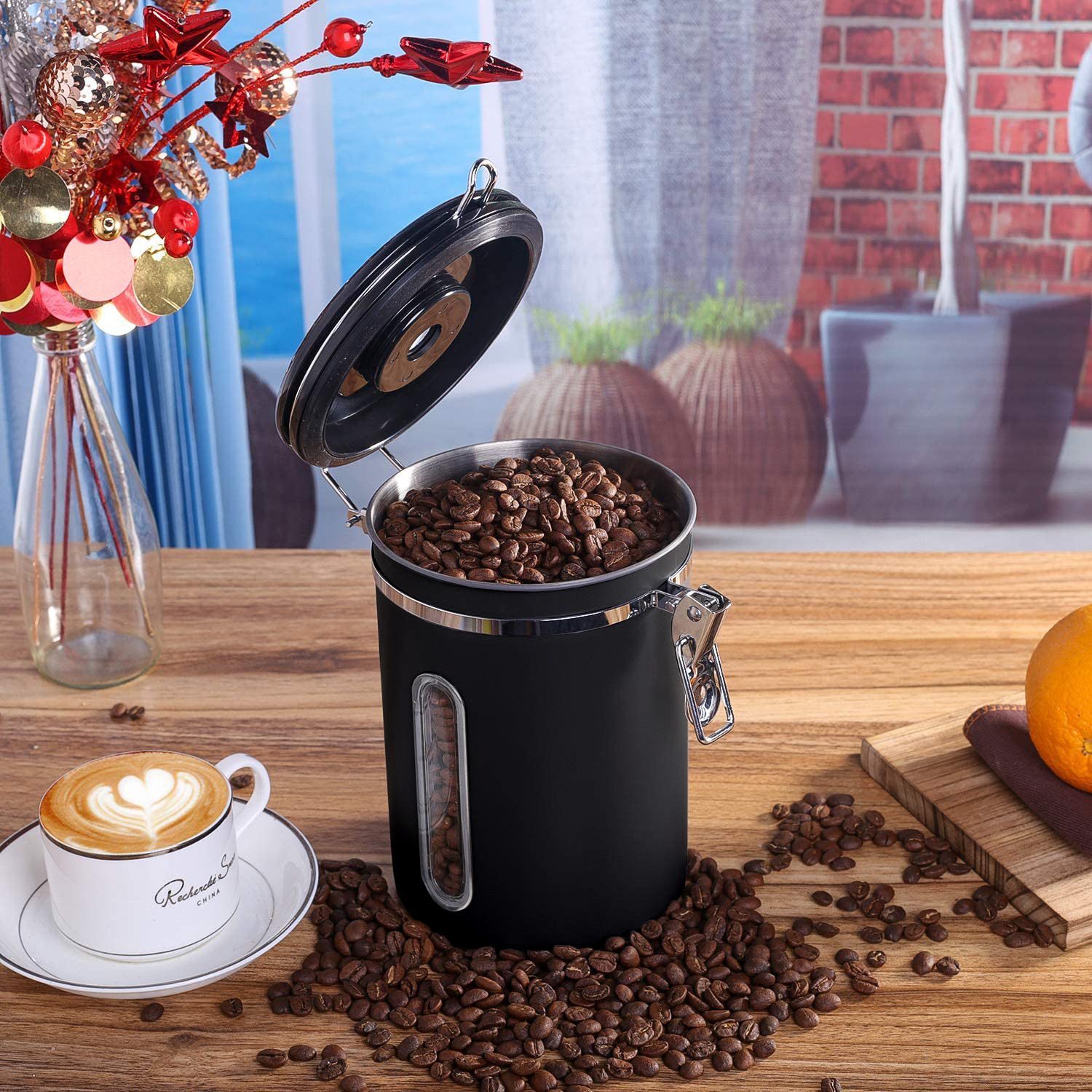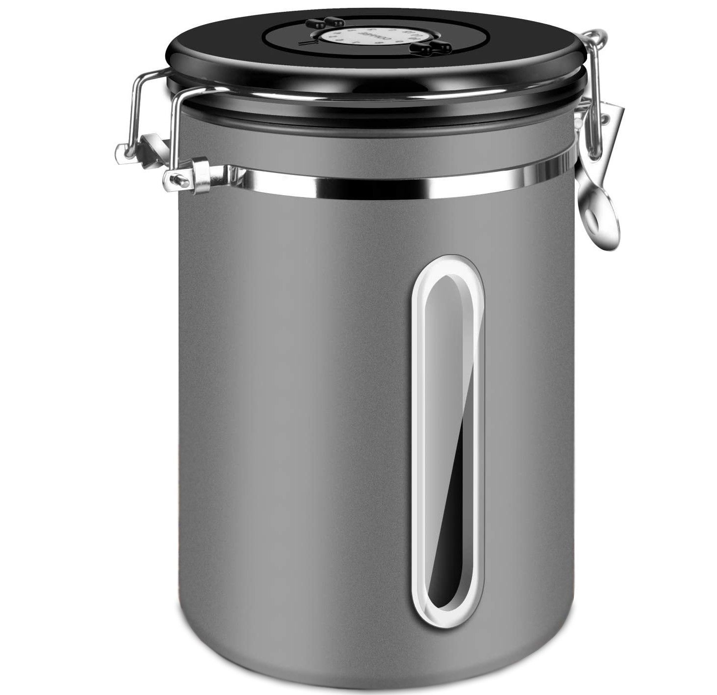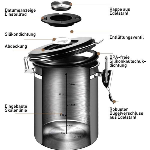 Kaffeedose 304 Edelstahl 1,8L Datums-Tracker Fenster luftdichter: schwarz/grau