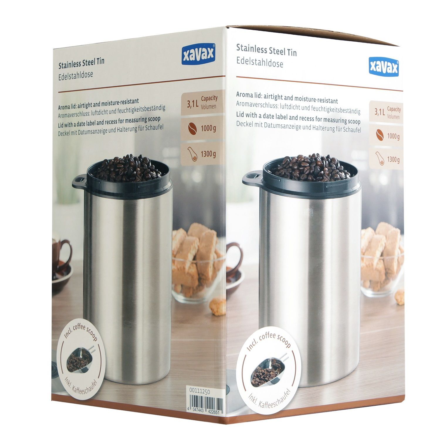 Hama Kaffeedose Edelstahl 1kg Behälter mit Kaffeeschaufel