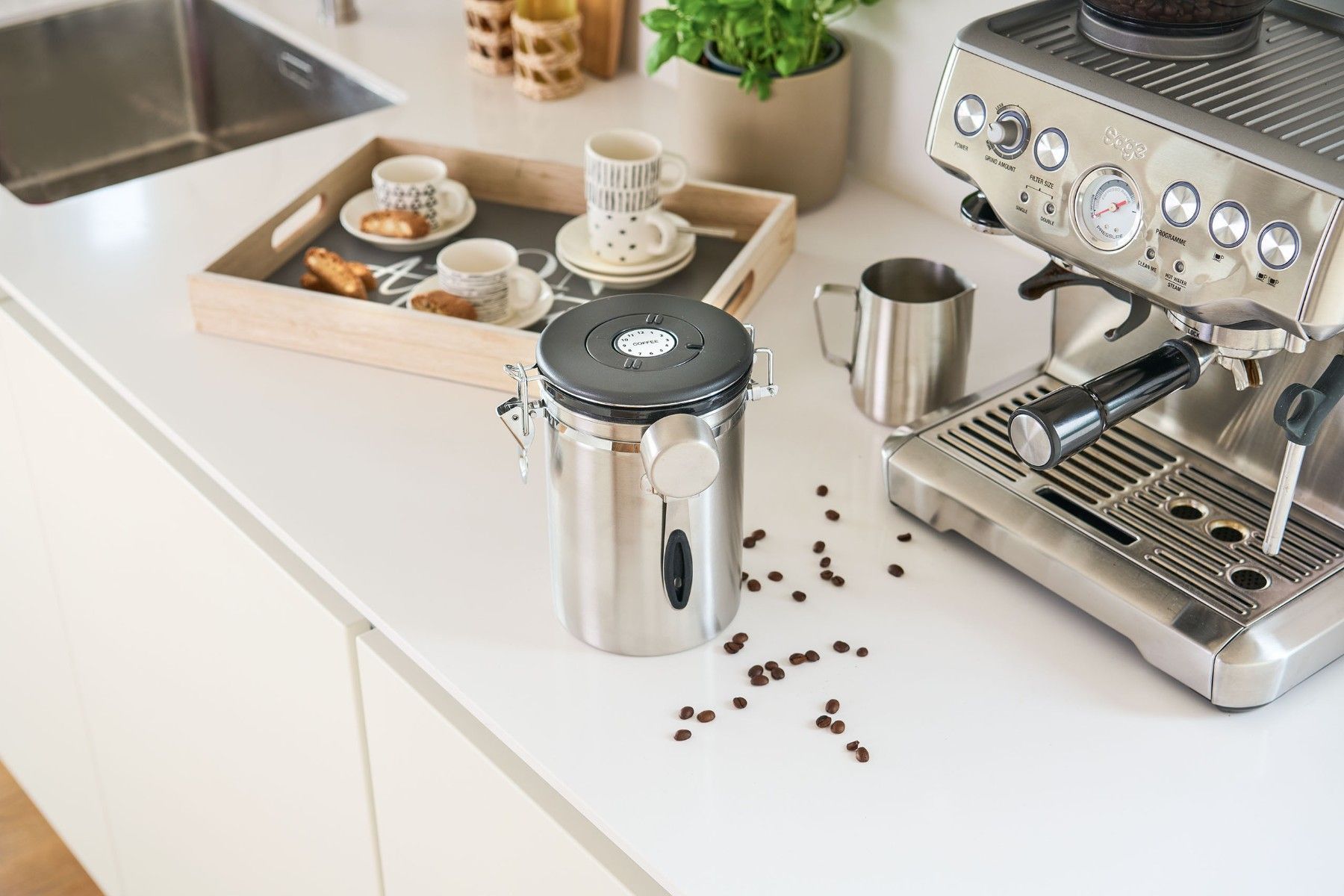 Kaffeedose m. Löffel, 1700ml, Edelstahl/Kunststoff