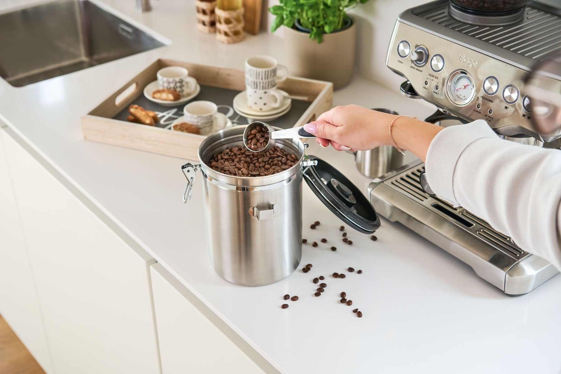 Kaffeedose mit Löffel, 2700ml, Edelstahl/Kunststoff