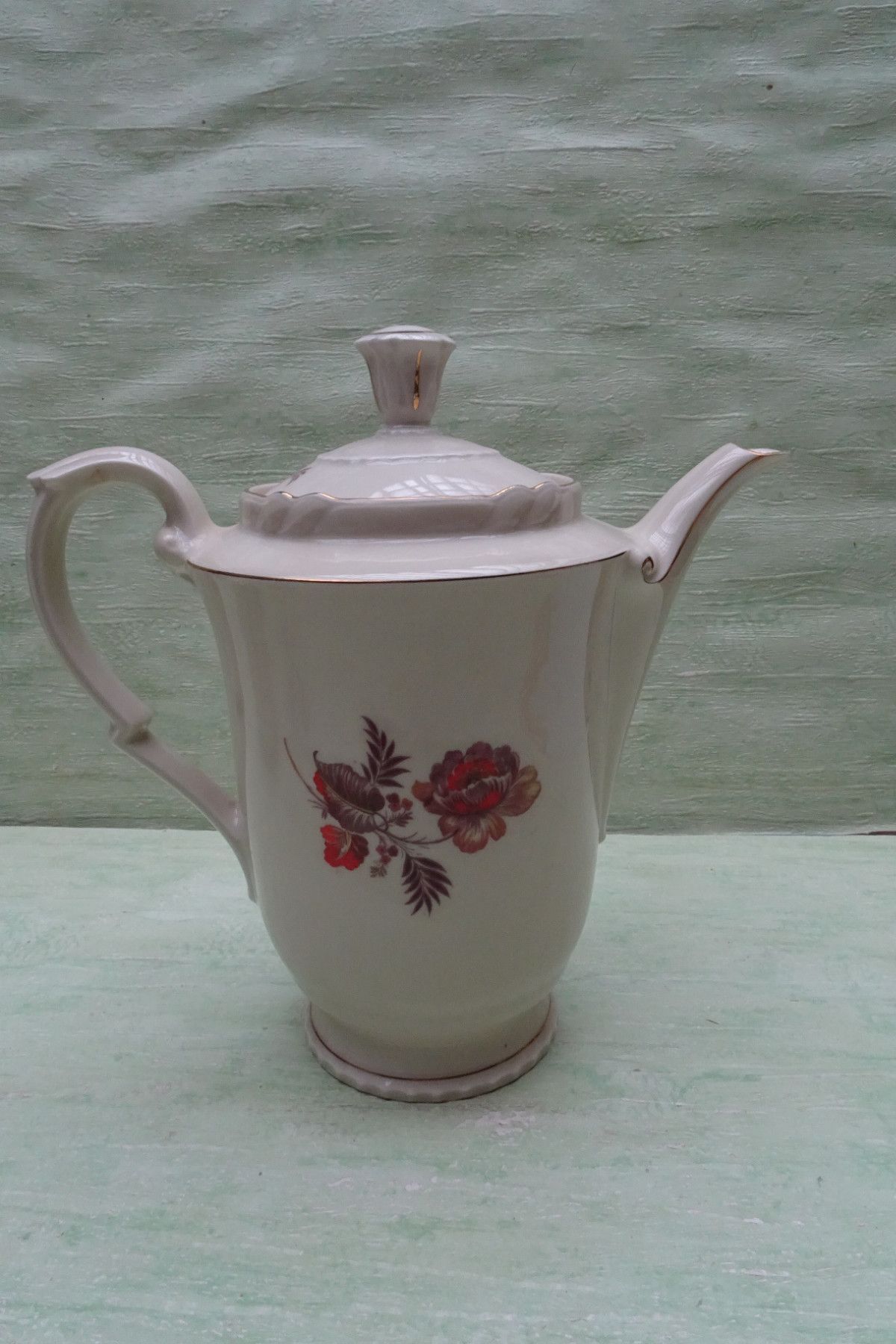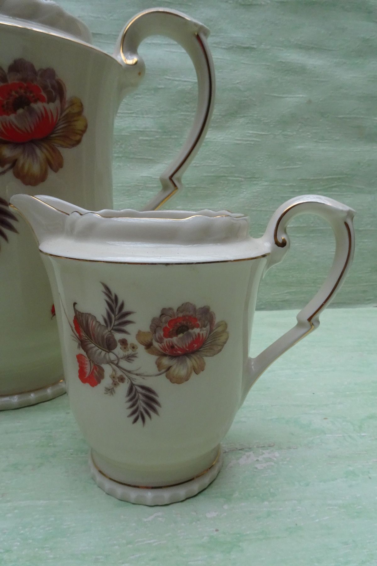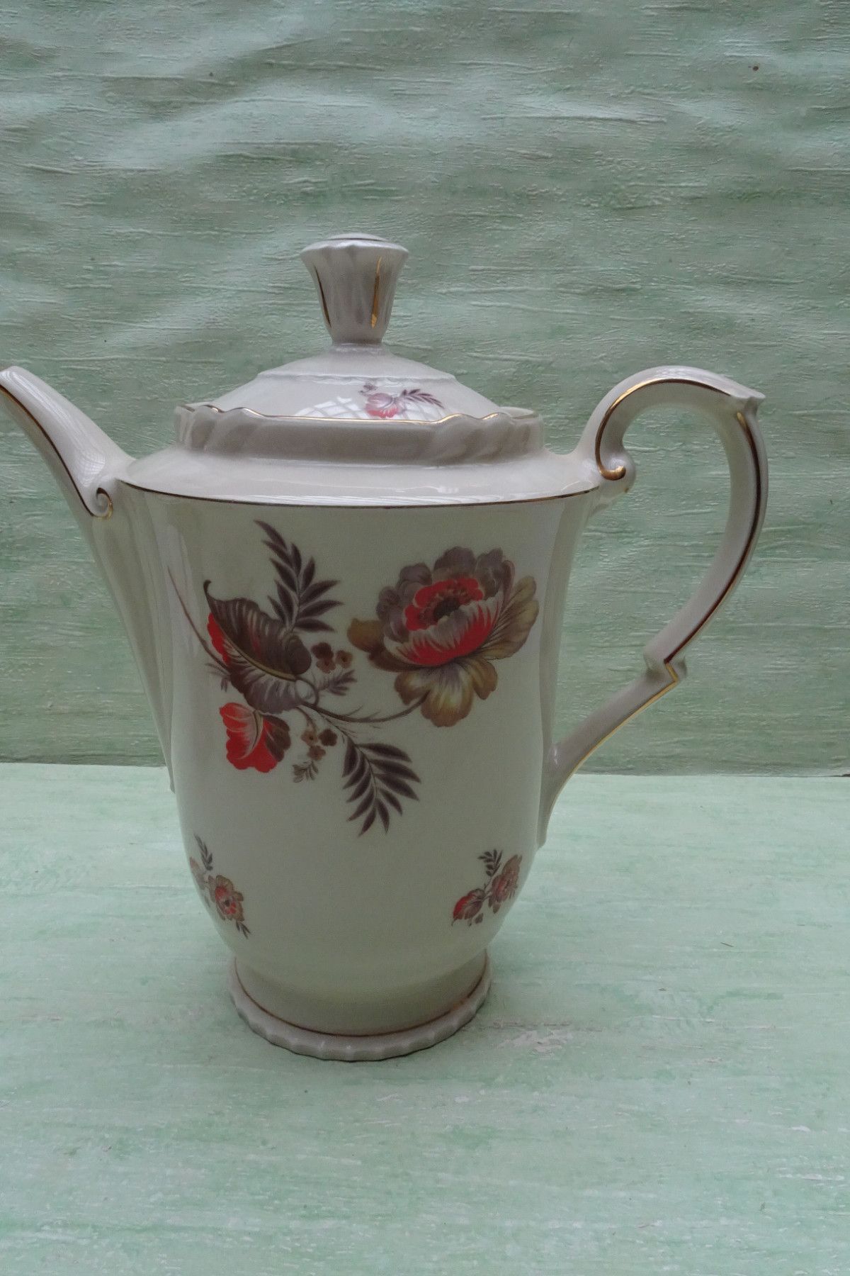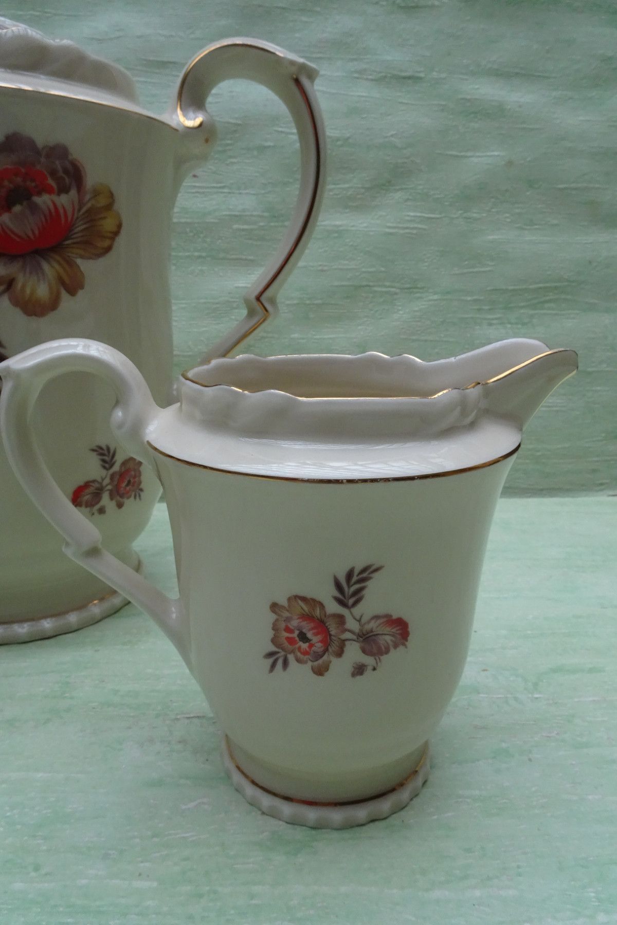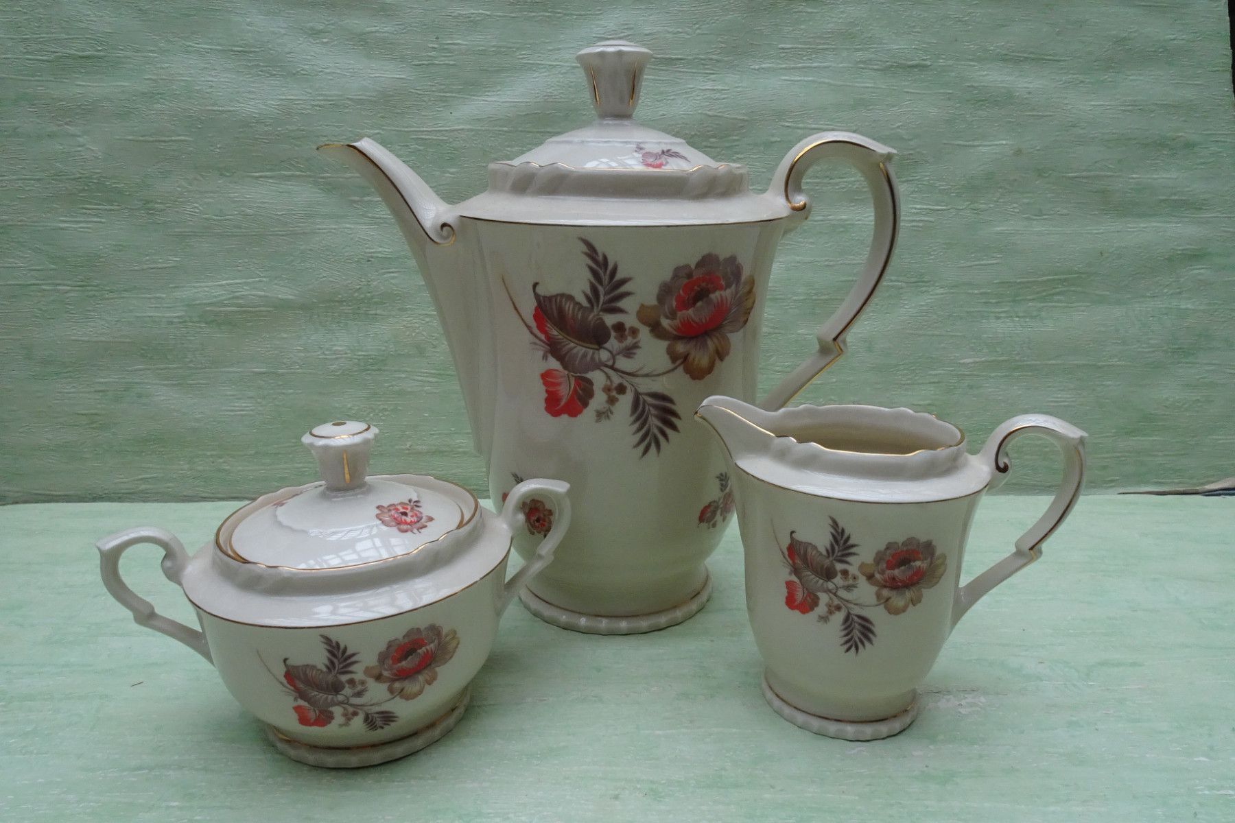 Kaffeekanne Milchkanne Zuckerdose braun-rötliches Blütendekor Mitterteich Bavaria
