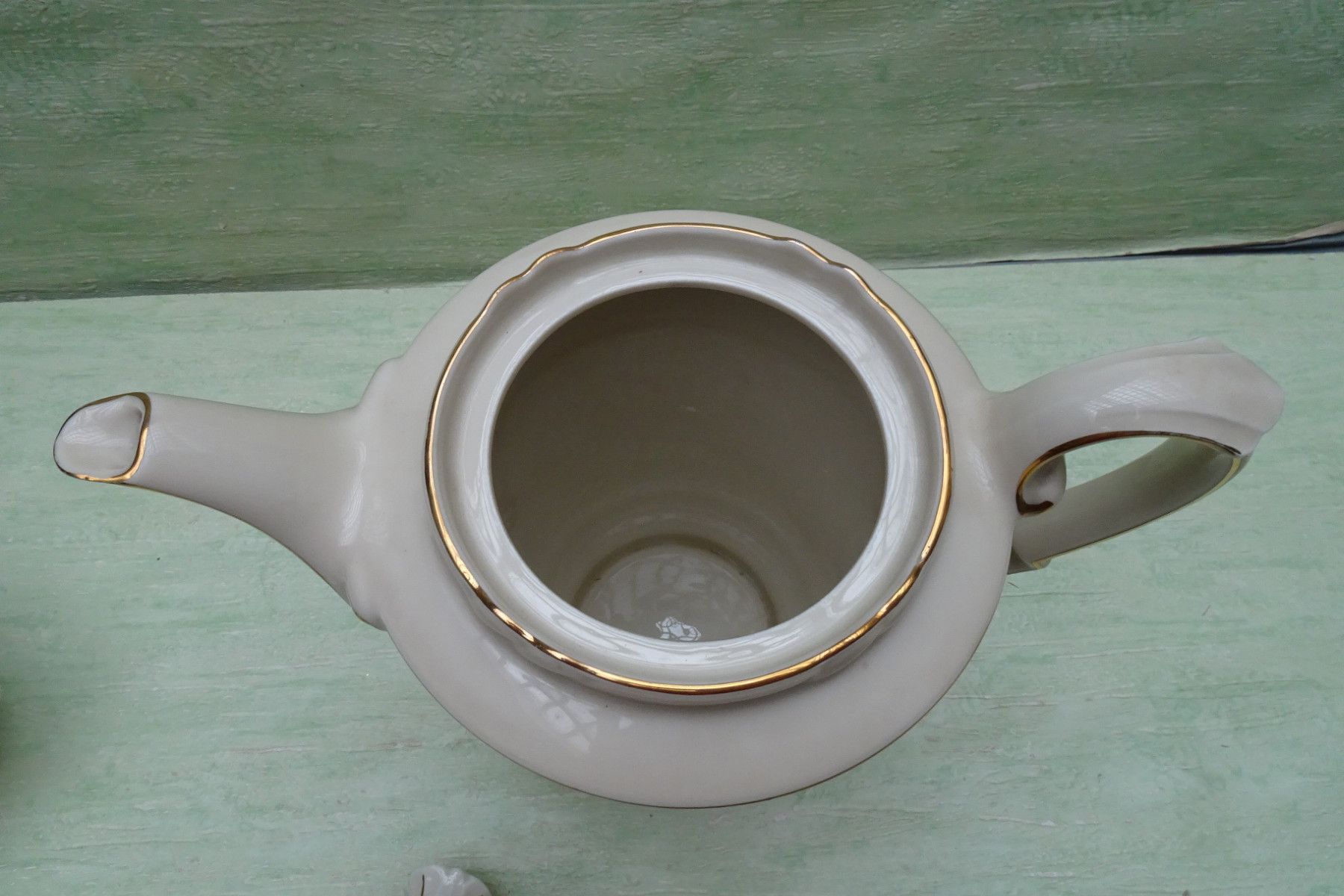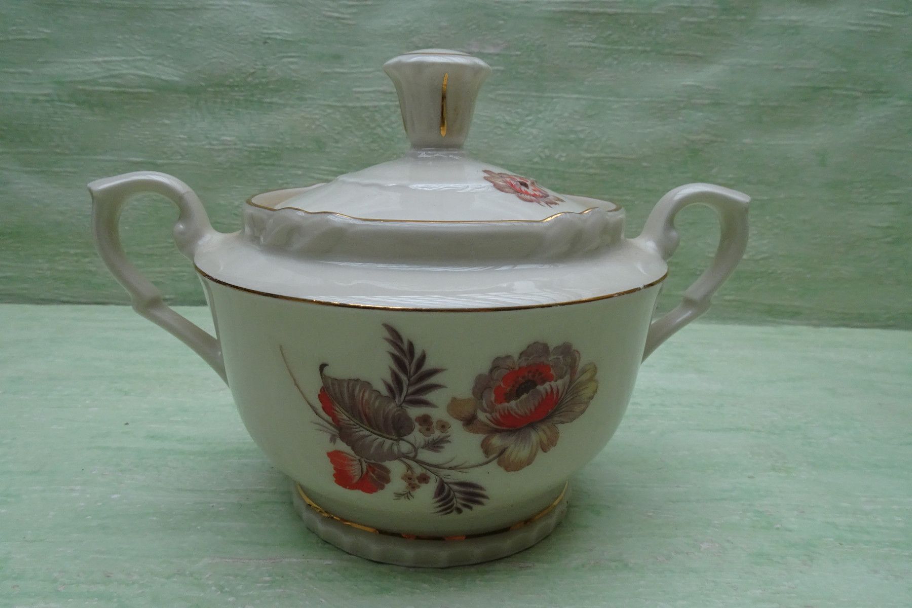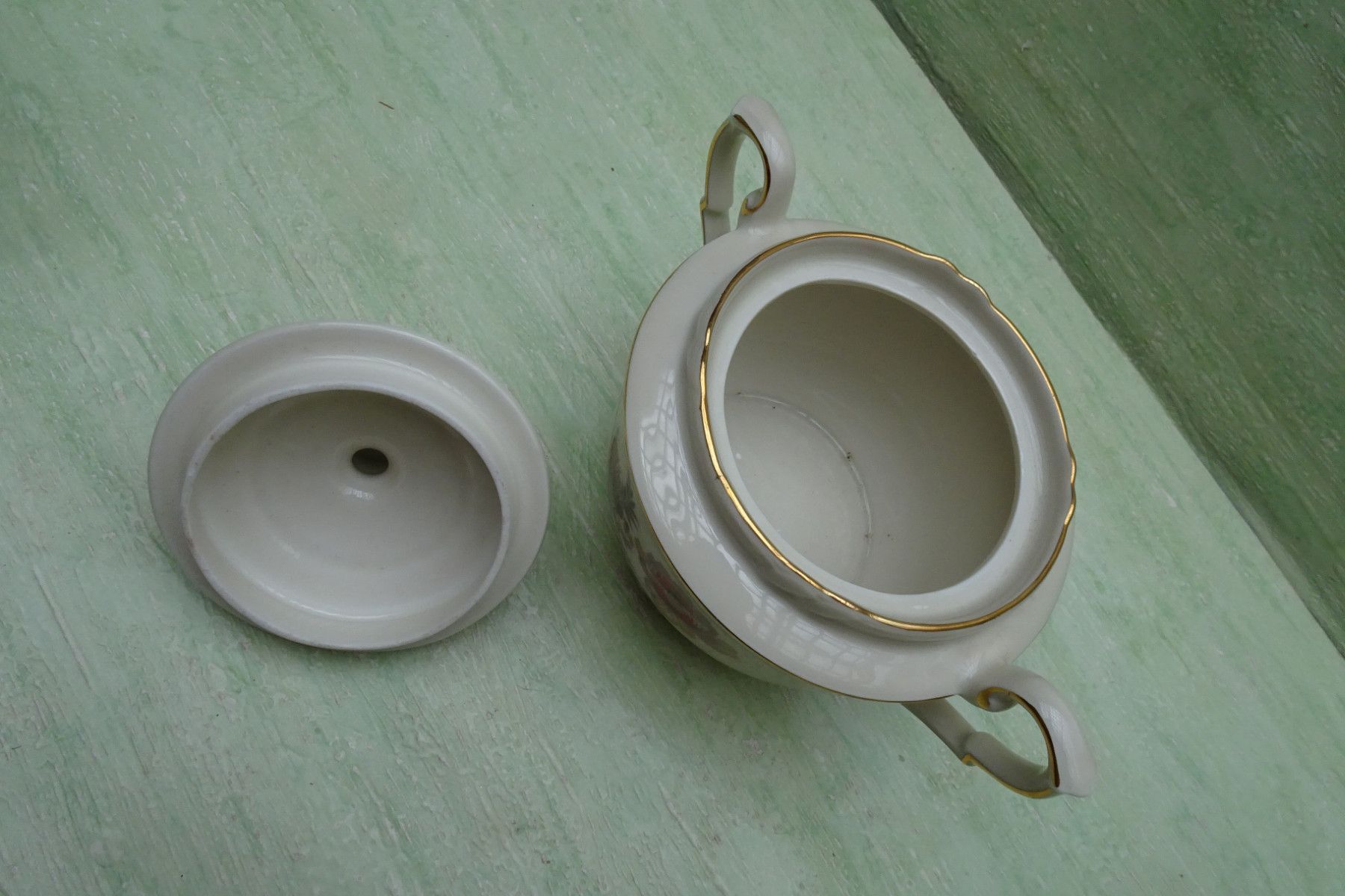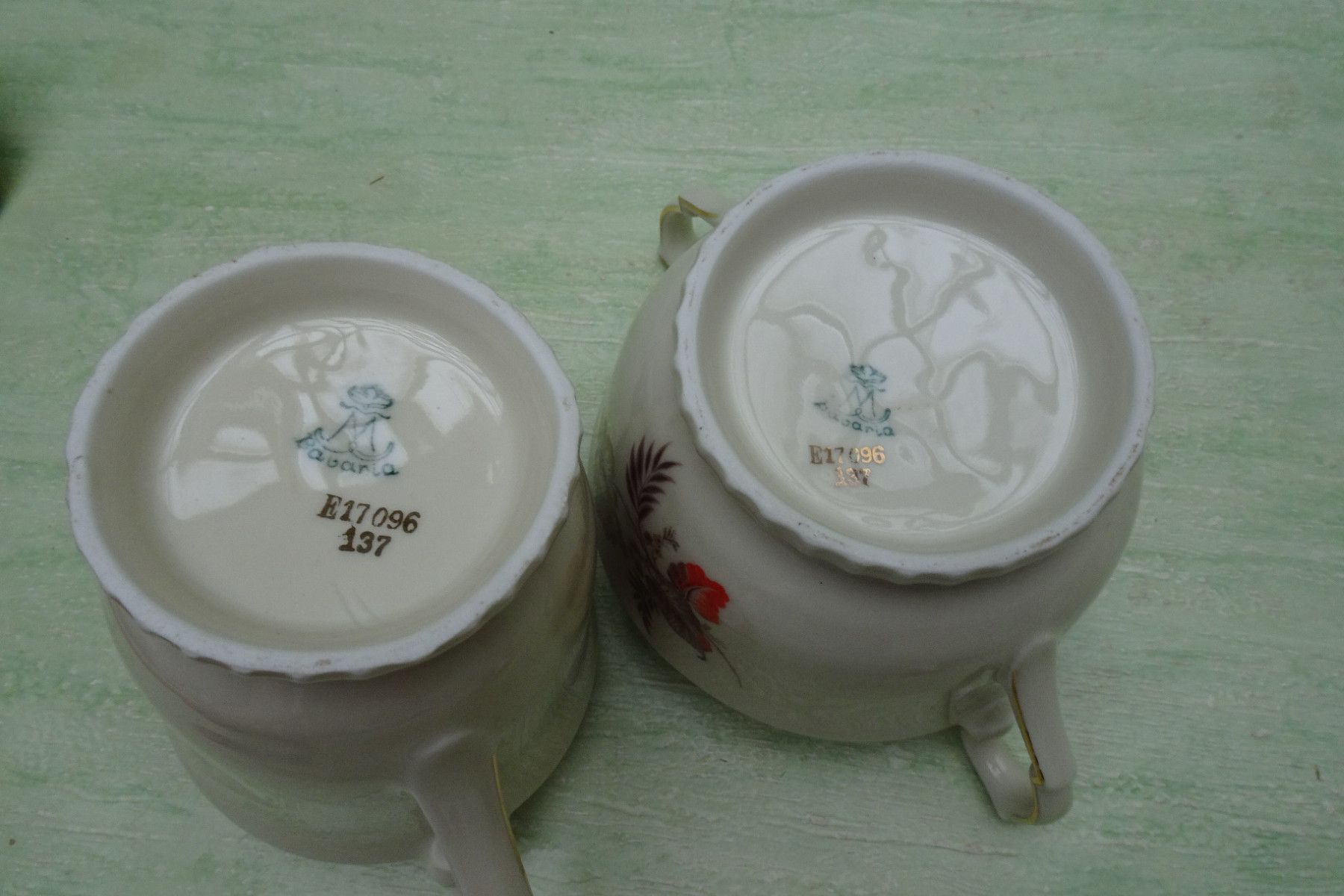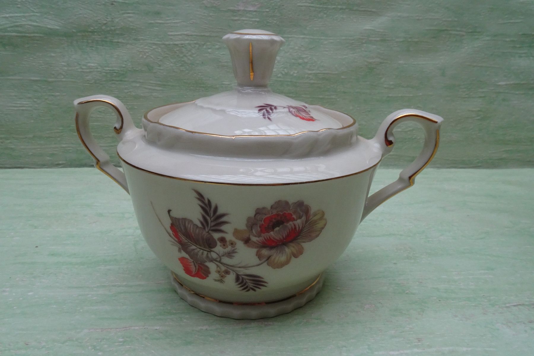 Kaffeekanne Milchkanne Zuckerdose braun-rötliches Blütendekor Mitterteich Bavaria