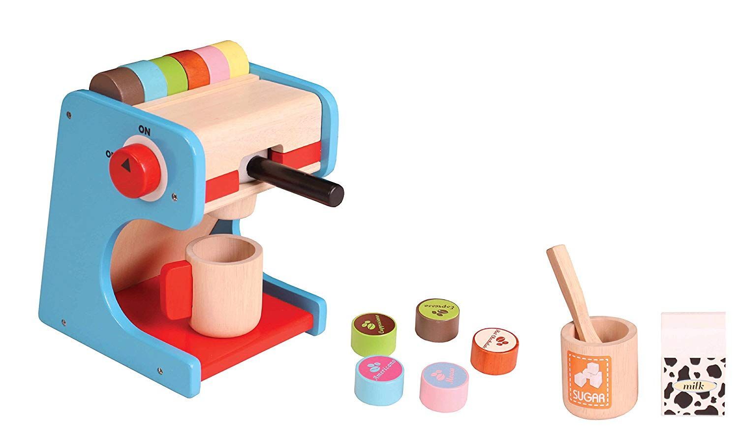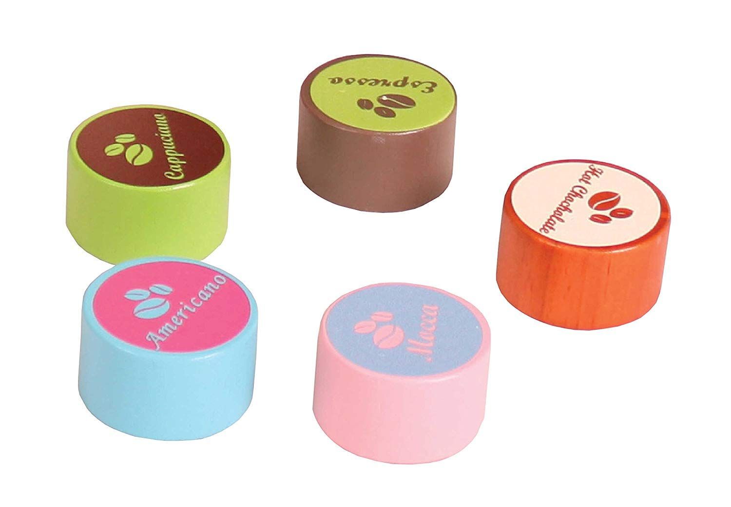 Kaffeemaschine mit 6 Pads aus Holz für Kinderküche, nJOYKIDS 14030