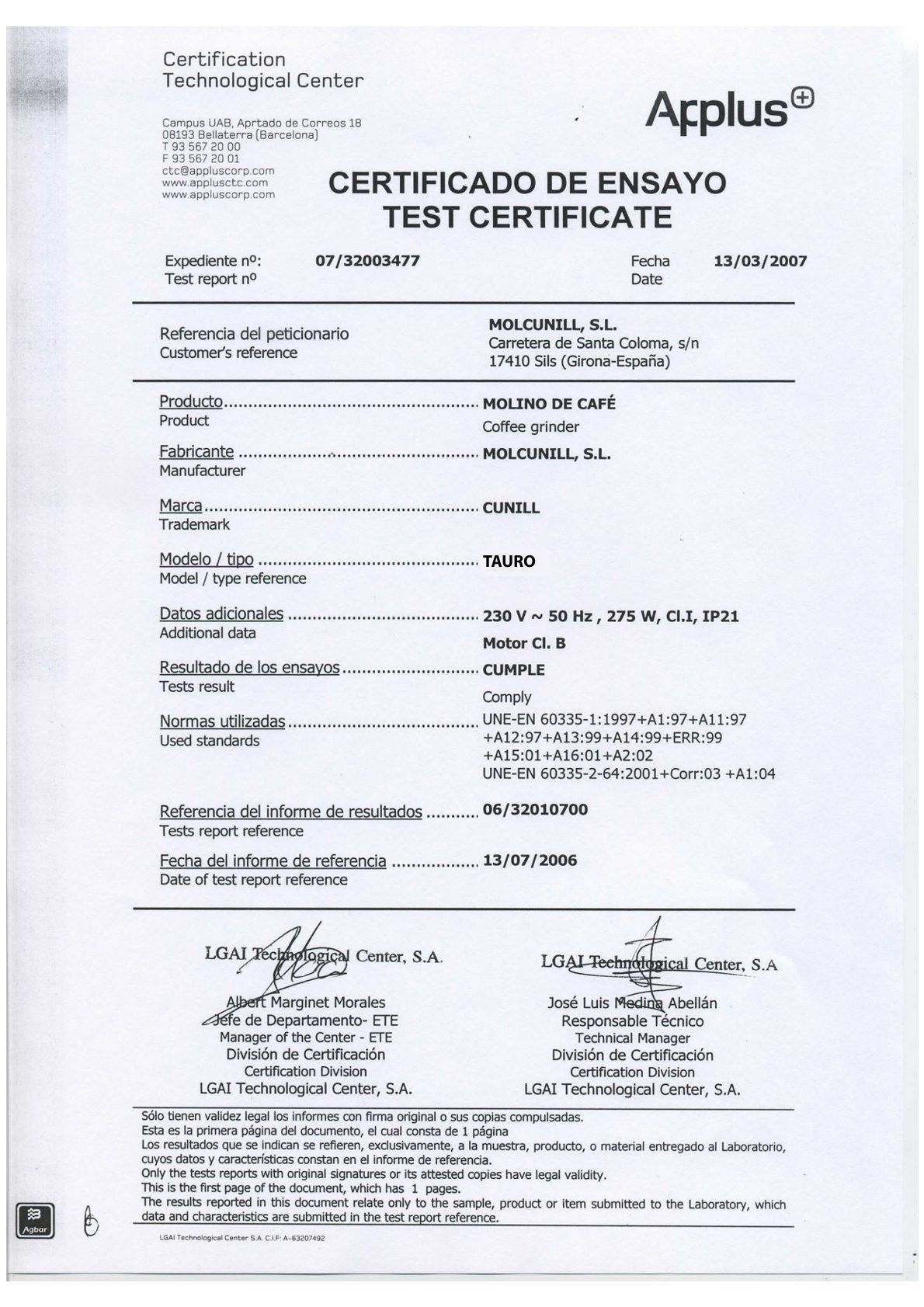 230V / 1N / 50 Hz