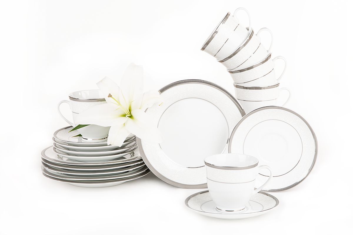 Kaffeeset & Teeservice & Dessertteller 6 Personen (12 Stück) GEOS PLATIN Konsimo