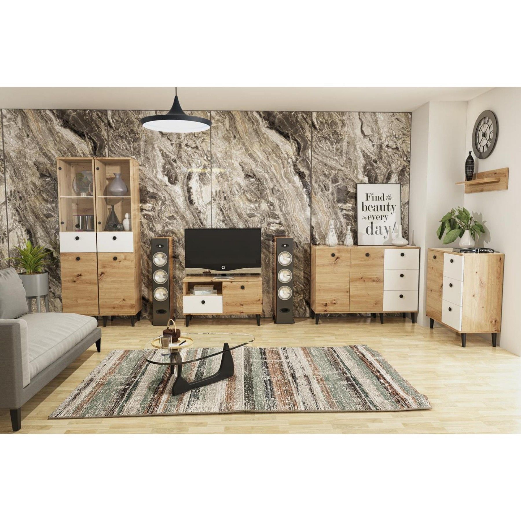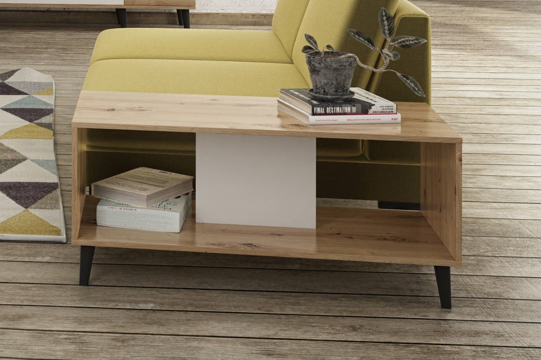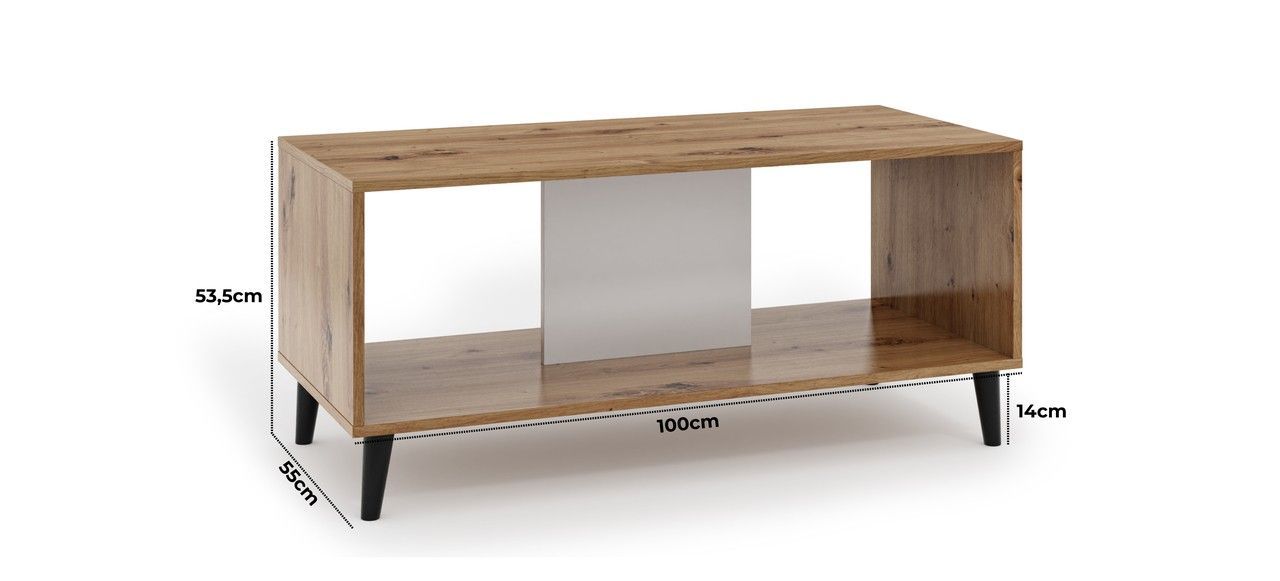 Kaffeetisch Vicktoria Couchtisch Wohnzimmertisch Wohnzimmer weiß und Eiche Artisan