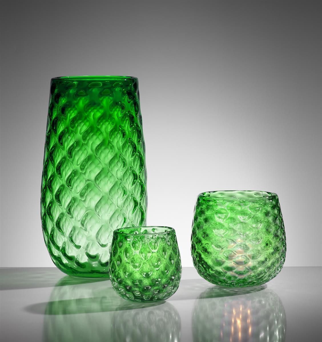 Kaheku Windlicht Giada grün, Ø 16 cm, Höhe 17 cm