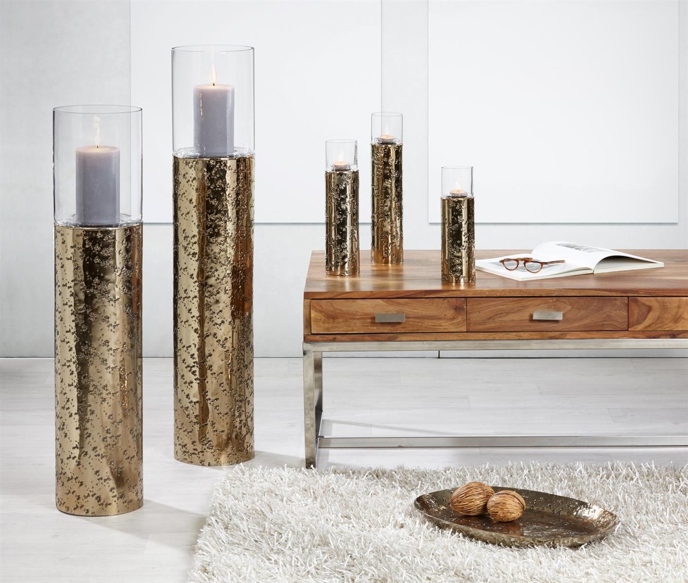 Kaheku Windlicht Loukia antik gold Aluminium mit Glasaufsatz, Durchmesser 7,5 cm,