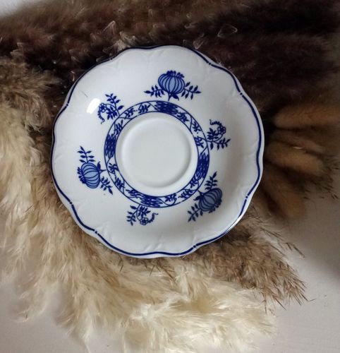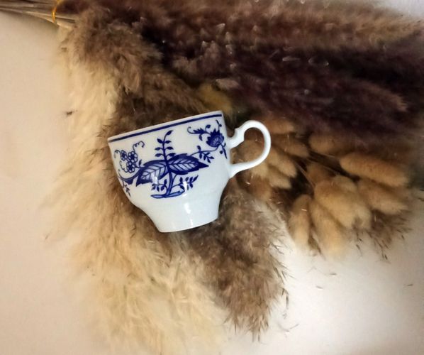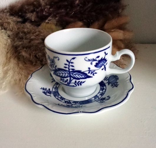 Kahla Zwiebelmuster DDR - Kaffeetasse mit Untertasse - grüner Bodenstempel