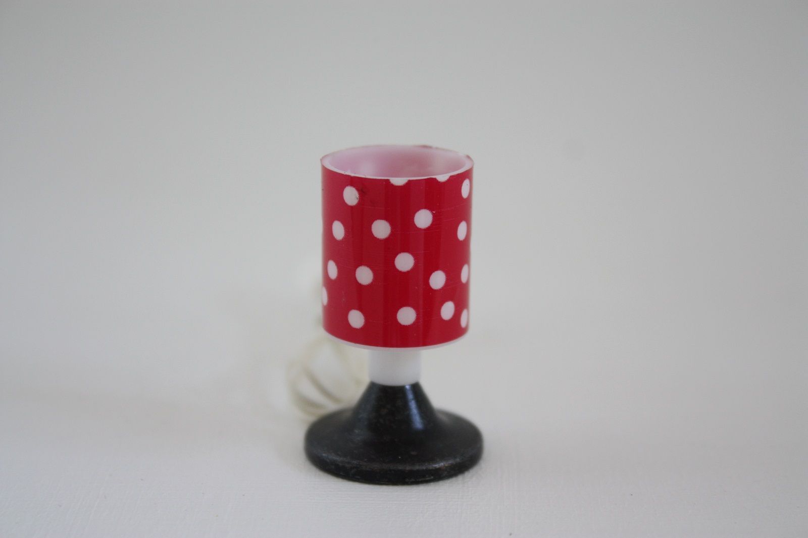 • Nachttischlampe 3,5V Tischlampe rot/ schwarz für Puppenhaus Puppenstube Kahlert 10483