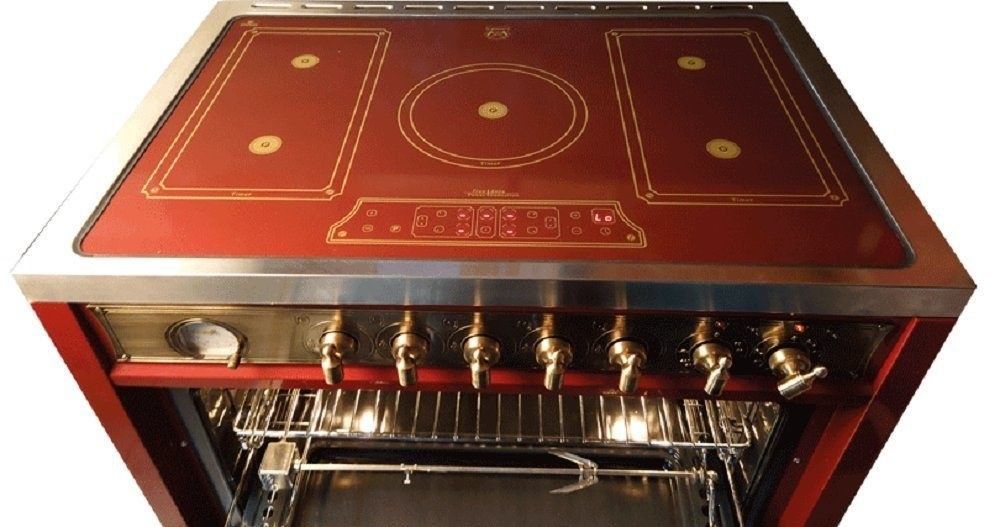 Kaiser HC 93655 IRotEm Elektro Standherd 90 cm + Dunstabzugshaube A 9315 Rot 90 cm