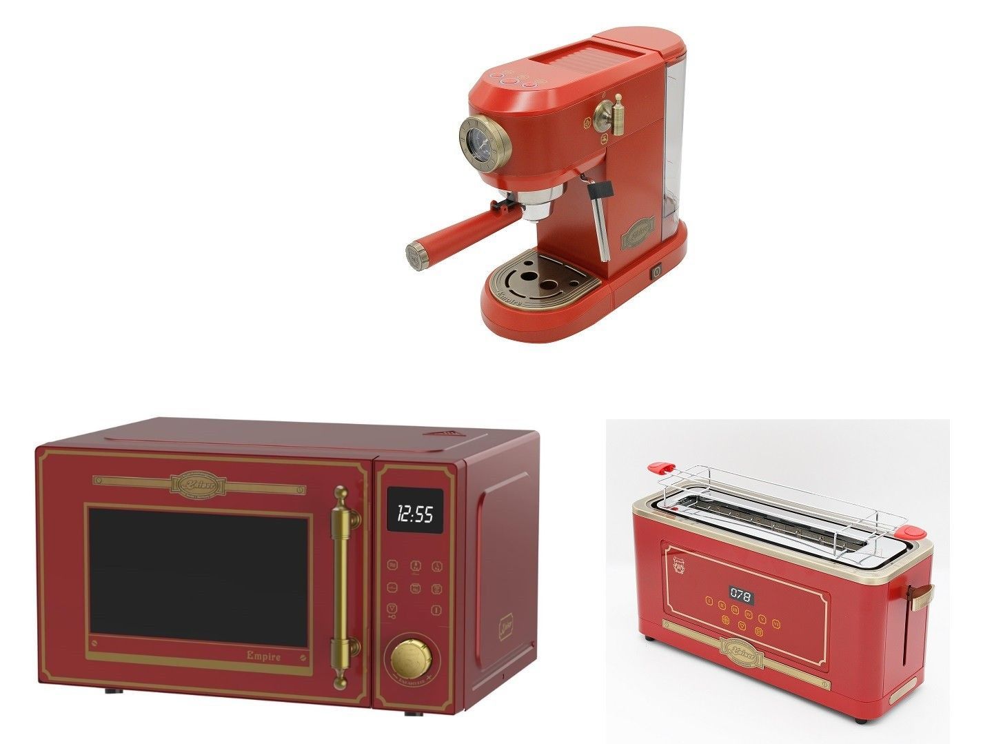 Kaiser Empire M 2530 RotEm Mikrowelle 25L+Kaffeemaschine KA 2005 RotEm Empire,19 bar+Retro-Toaster T 4000 RotEm
