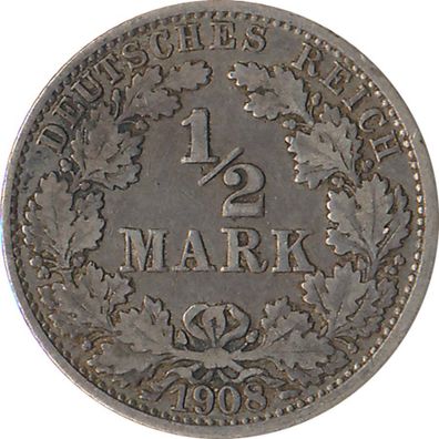 Kaiserreich J.016 1908 J Kleinmünze 1/2 Mark Silber*