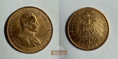 Deutschland Kaiserreich Goldmünze 7,965 g., 20 Mark 1914 A Wilhelm II. in Uniform