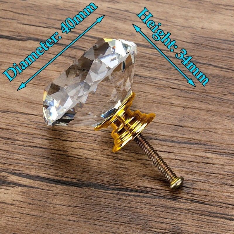 KAK Diamond Shape Crystal Glass Knobs - 20-40mm, for Cupboard, Drawer, Cabinet, Ward