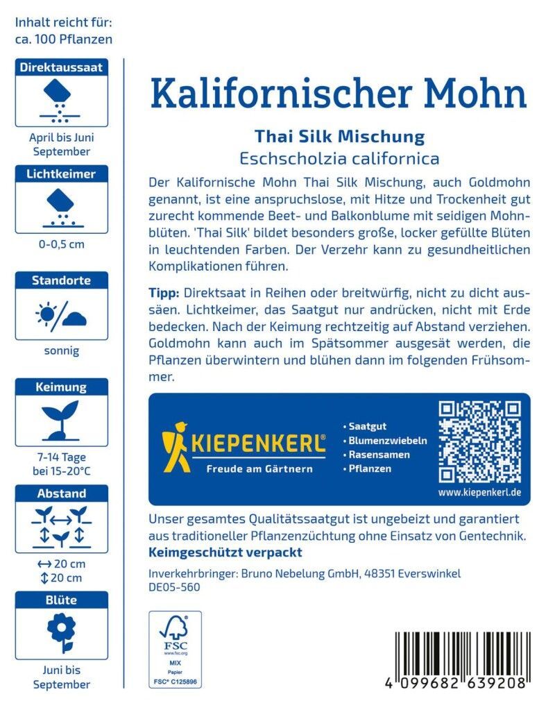Kiepenkerl Kalifornischer Mohn Thai Silk Mix, Trockenheitsfeste Beetblume - auch für