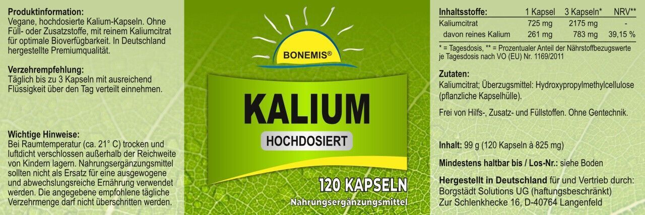 Kalium (hochdosiert, hohe Bioverfügbarkeit), 120 Kapseln ohne Zusätze, Bonemis®