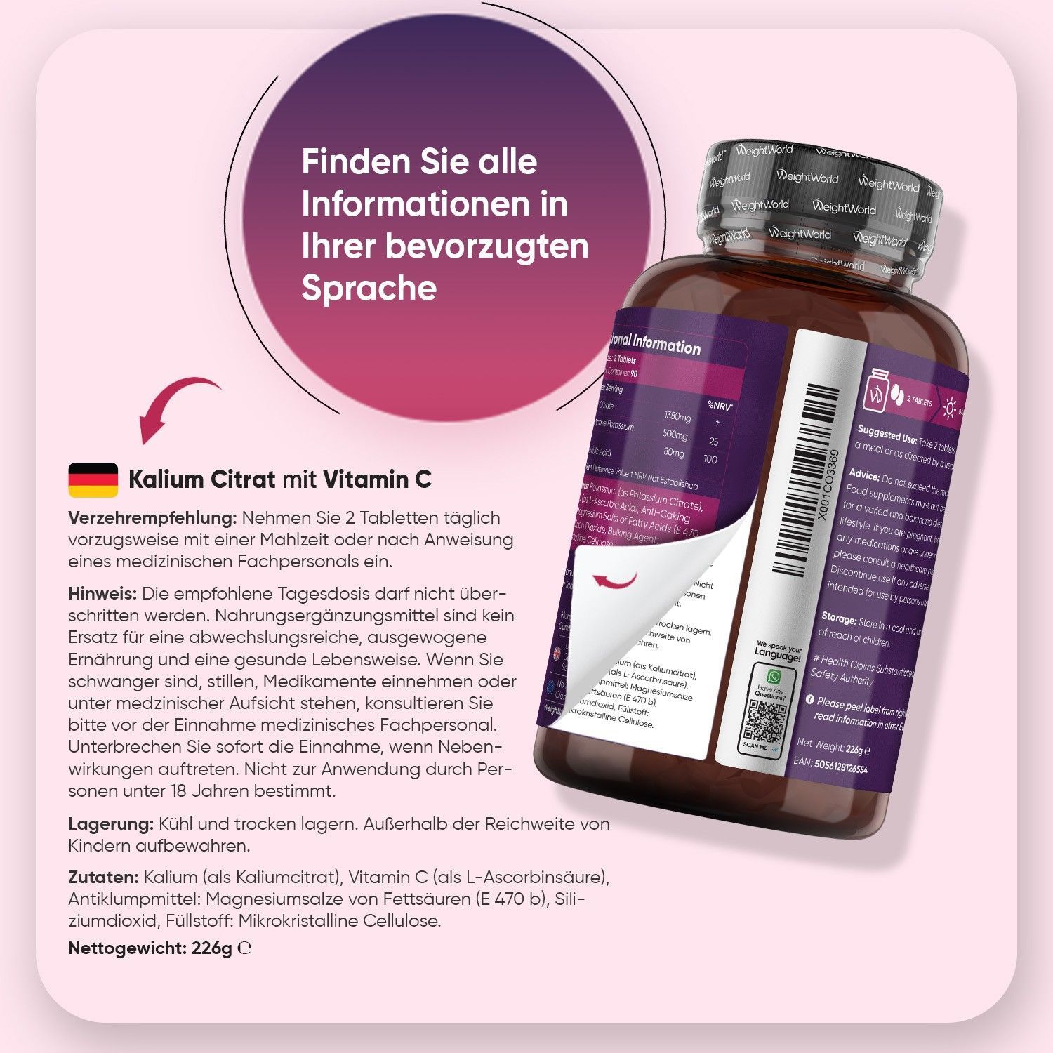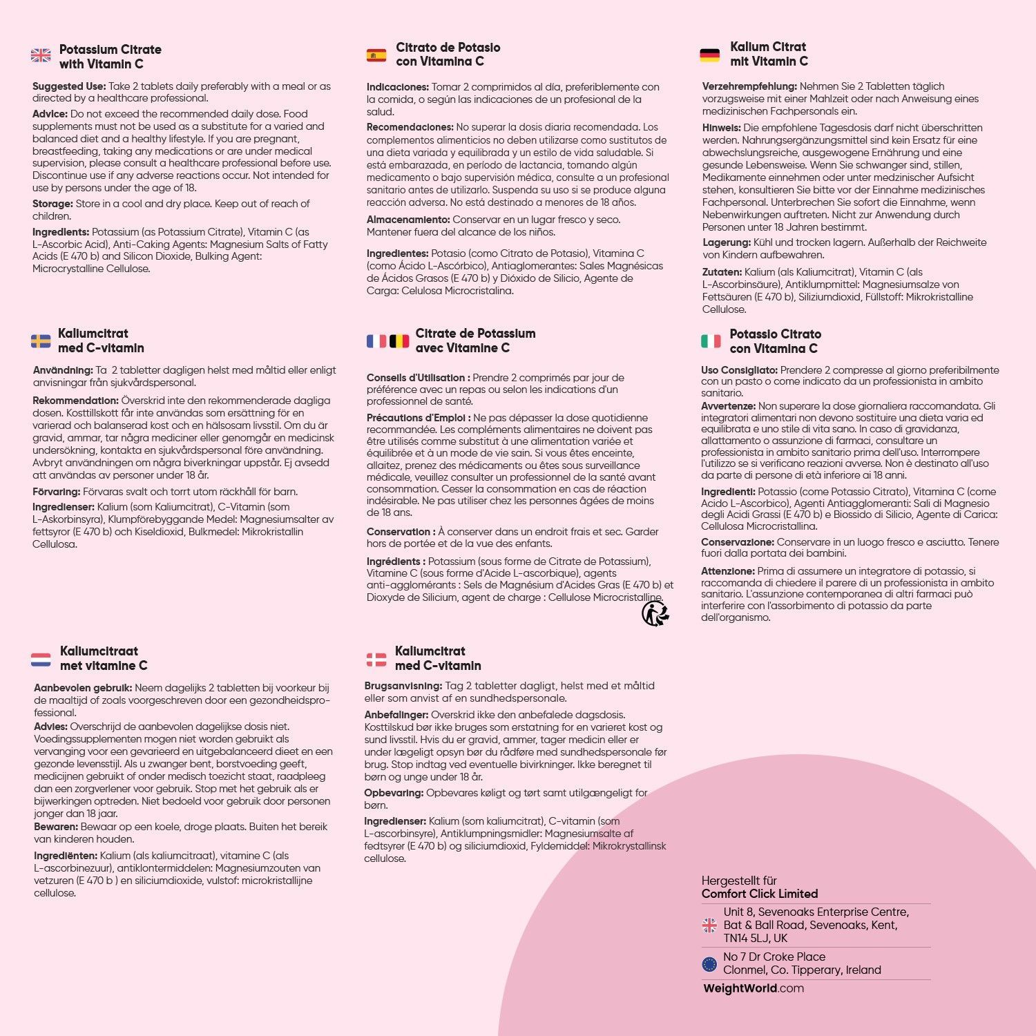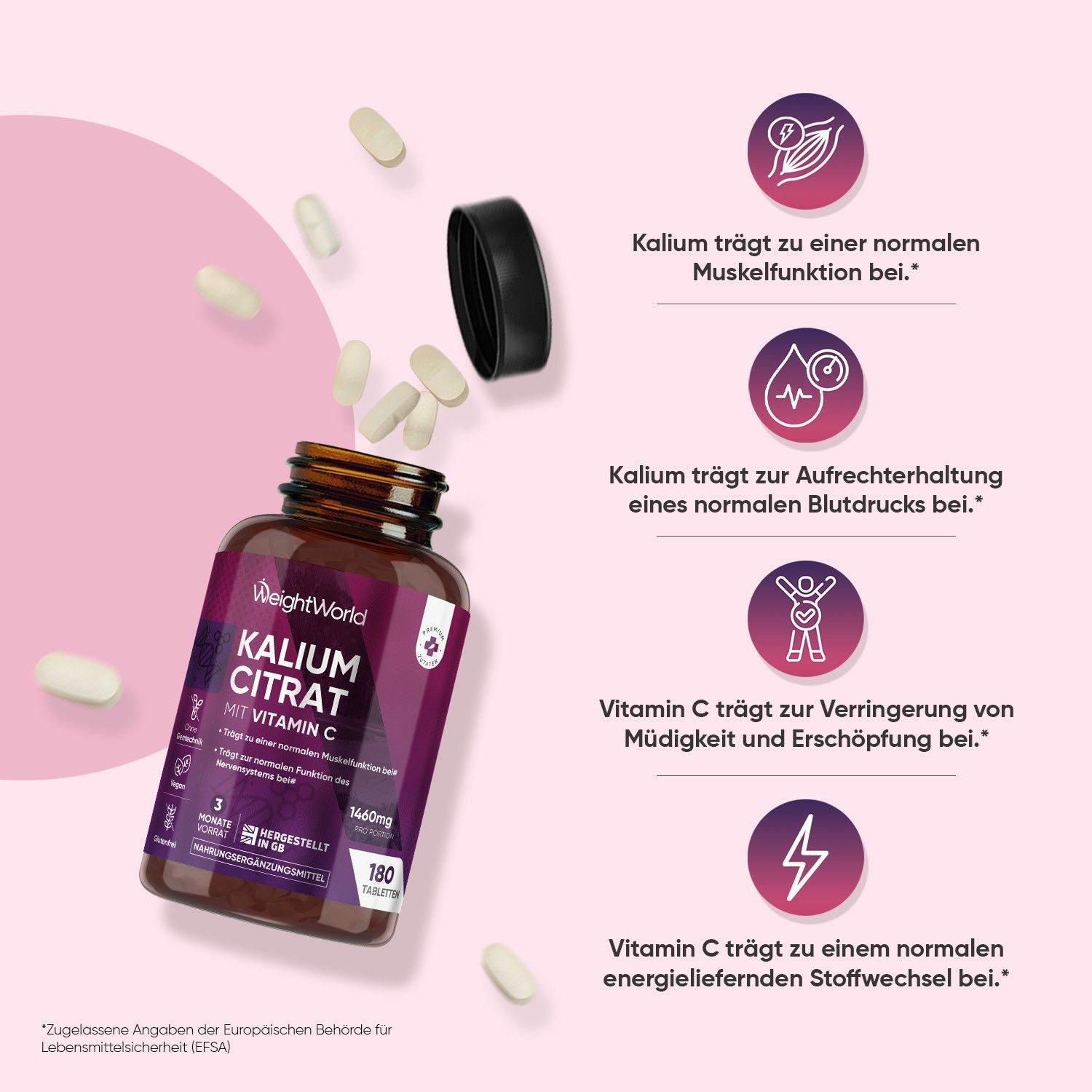 Kalium Tabletten - 500mg aktive Potassium - 3 Pack - WeightWorld