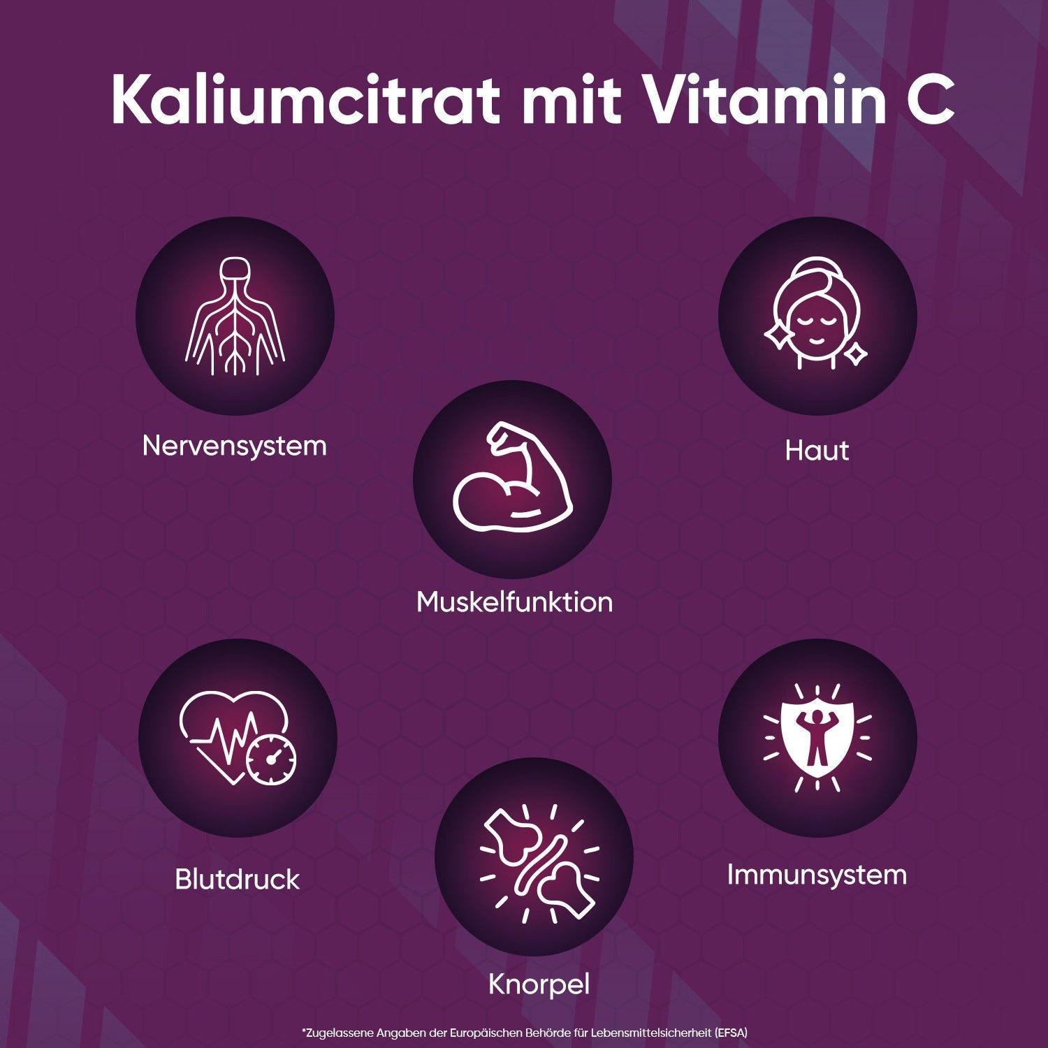 1460mg je Tagesdosis (80mg Vit C & 1380mg Kaliumcitrat)
