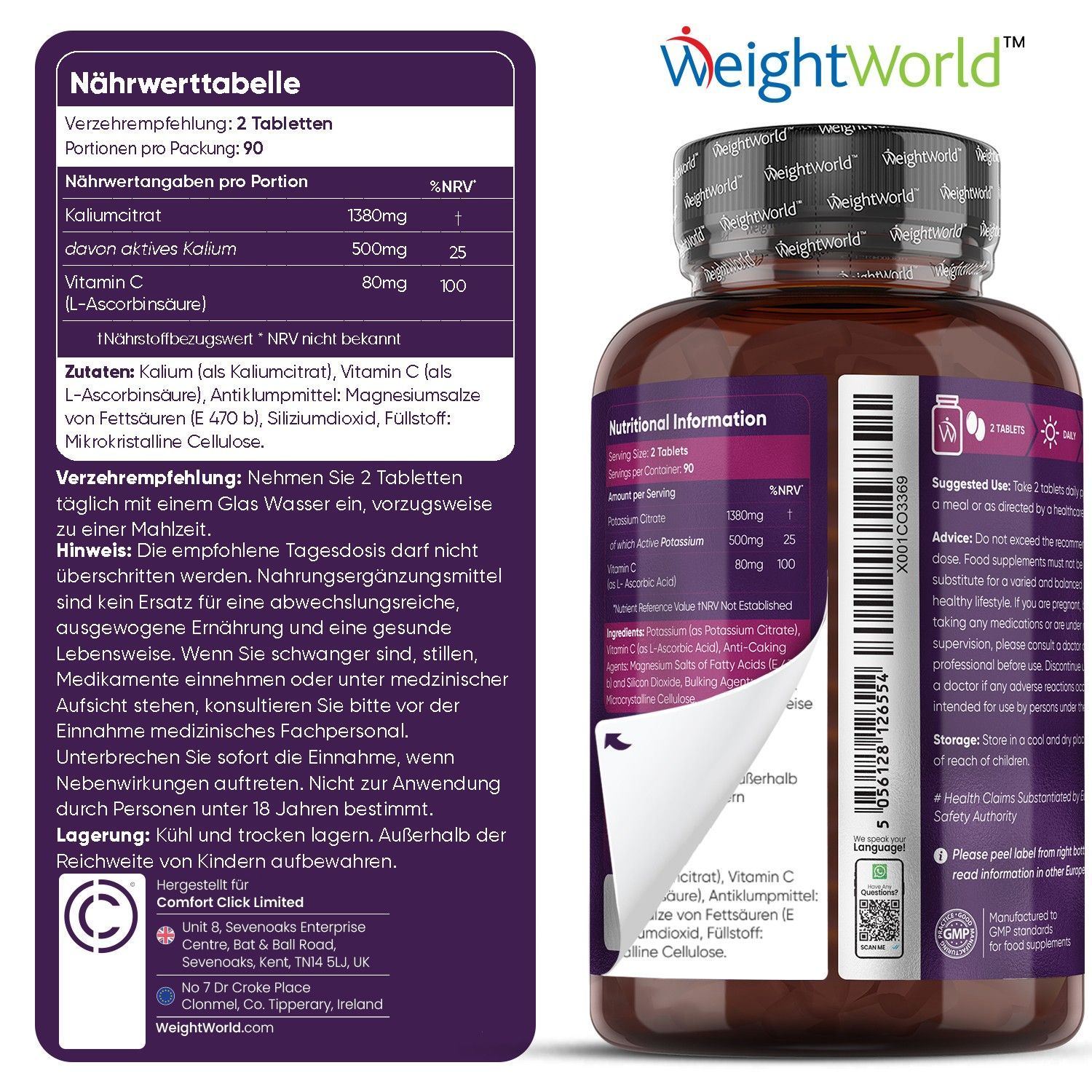 Kalium Tabletten - 500mg aktive Potassium - WeightWorld