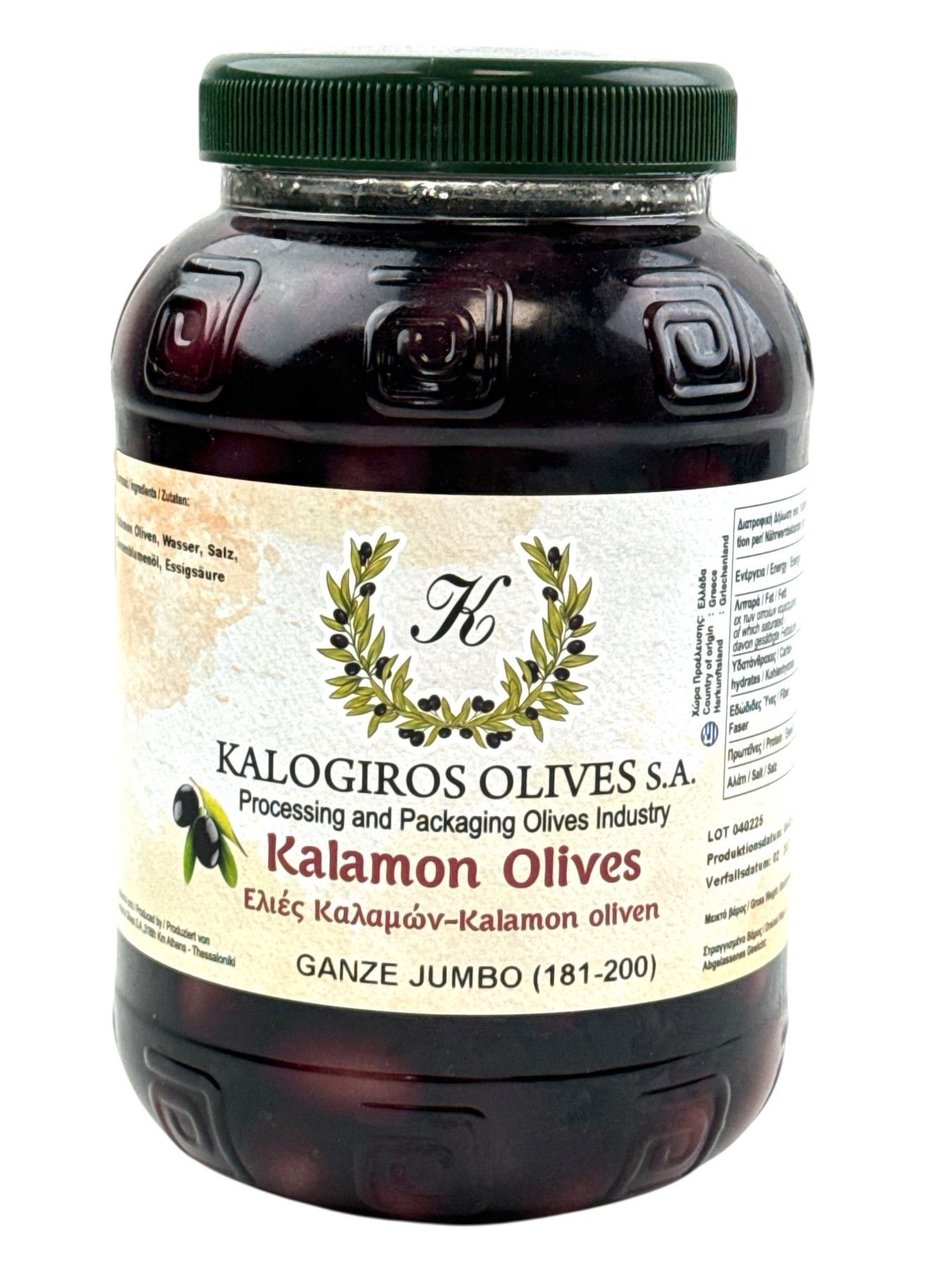 Kalogiros Kalamata Oliven ganz 2x 1kg mit Stein in Salzlake aus Griechenland