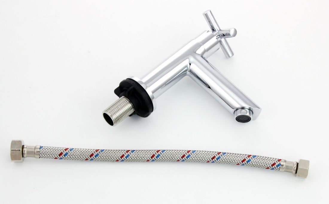 Kaltwasser Armatur Bad WC Standventil Kreuzgriff mit Anschlussschlauch, Chrom