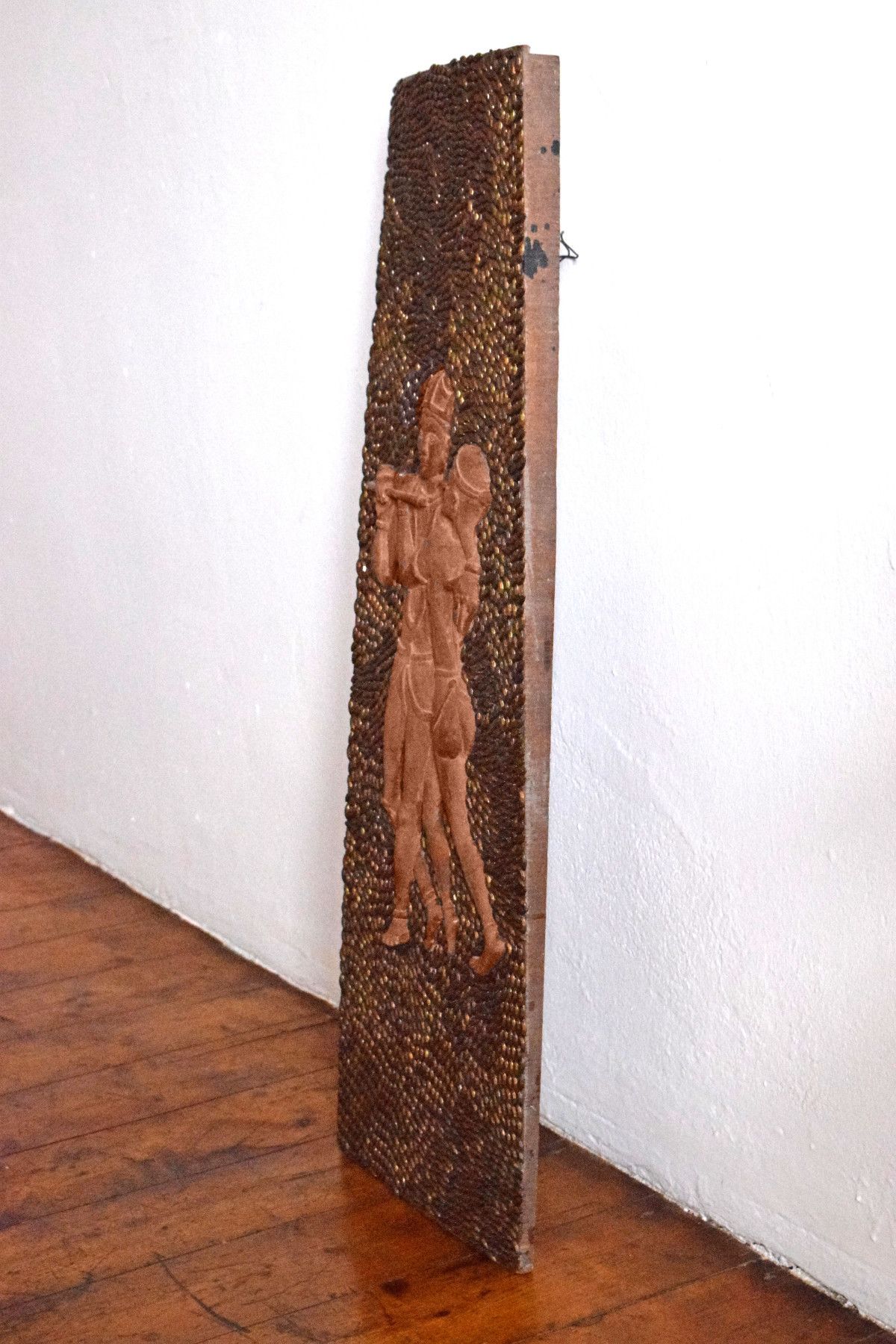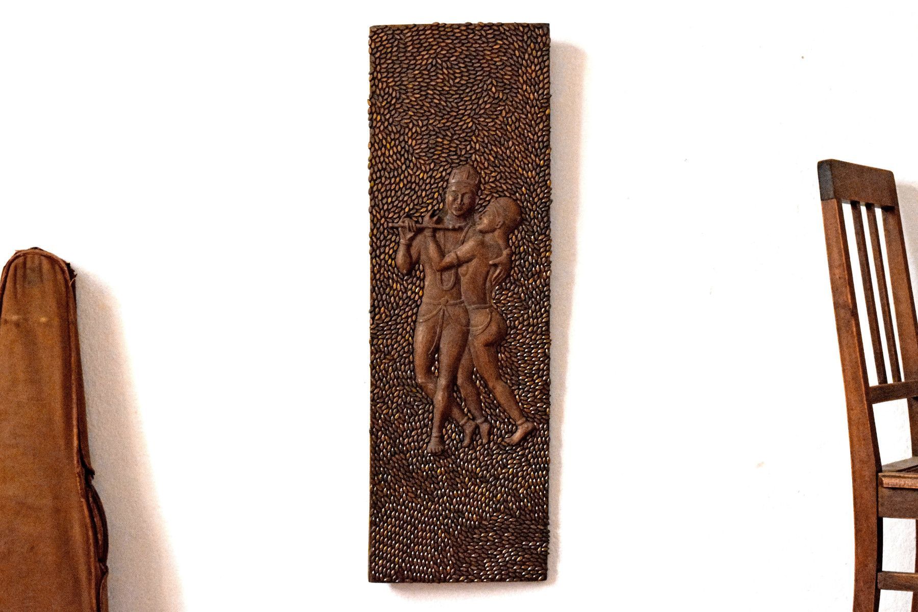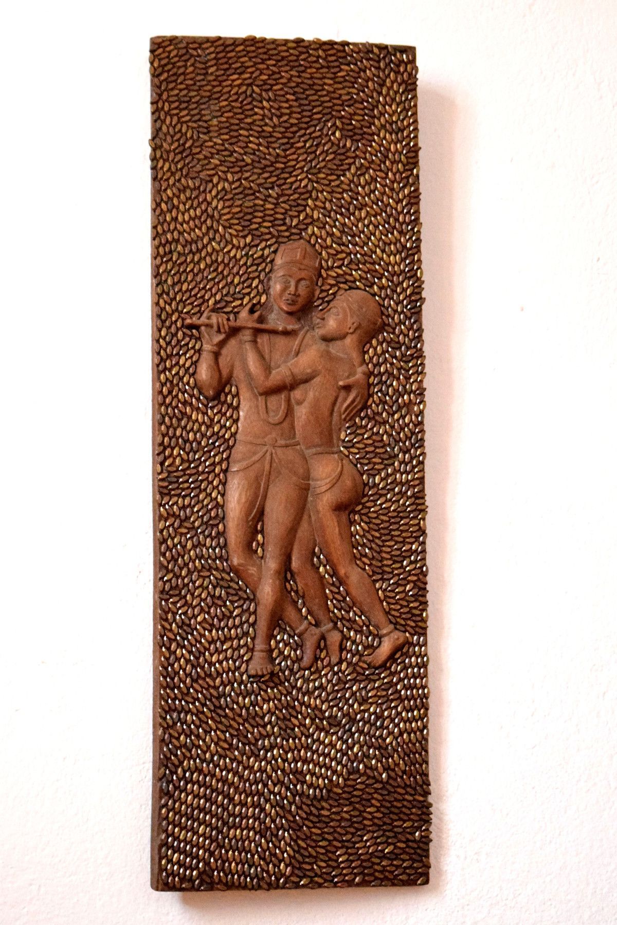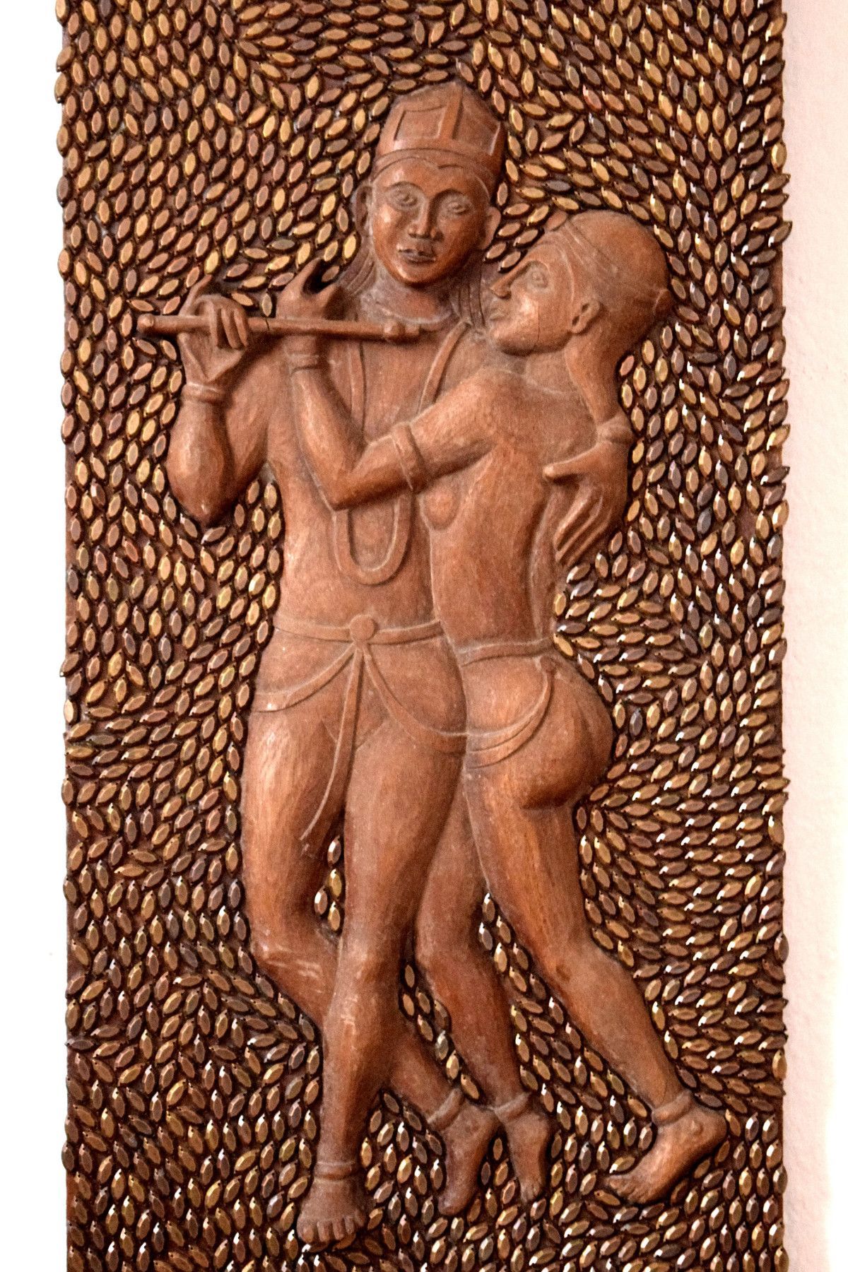 große handgeschnitzte Kamasutra- Tafel aus ostindischem Mahagoni Holz (Chukrasia Tabularis) gestaltet mit bronzefarbenen Zierperlen aus Kunststoff Höhe 82cm, Breite 30cm, Tiefe 2cm inkl. Wandaufhängung Der Versand innerhalb Deutschlands ist kostenlos. Verkauf ohne Deko.