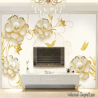 • Vlies Fototapete Wandtapete Wandbilder Goldene Farbe Elegante Kamelie Perle 2777