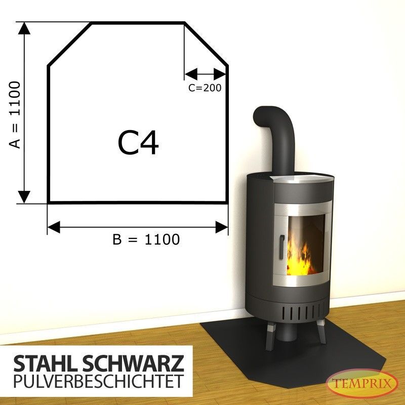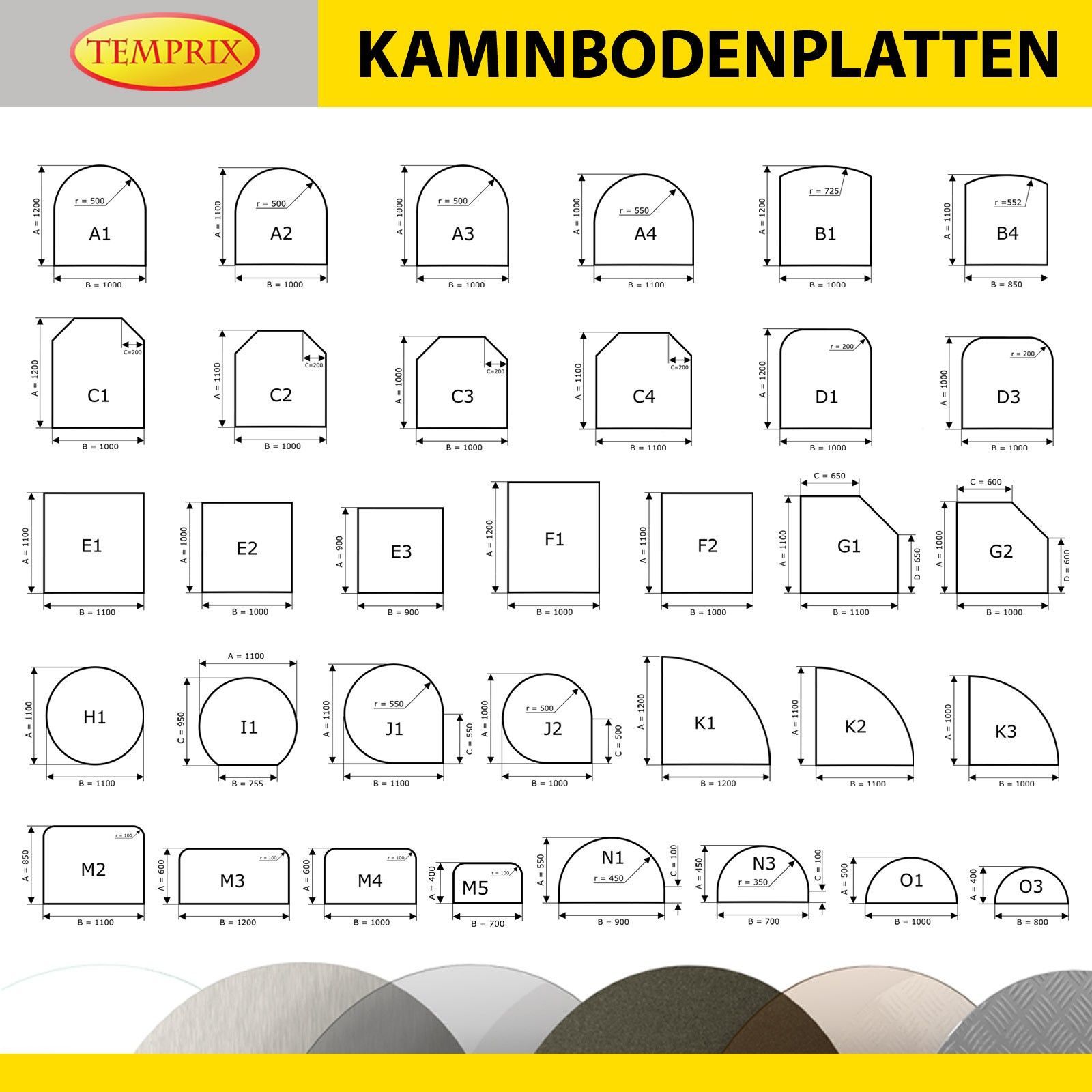 Kamin Bodenplatte Funkenschutz Kaminplatte Stahl schwarz Ofen Platte Ofenblech - C4