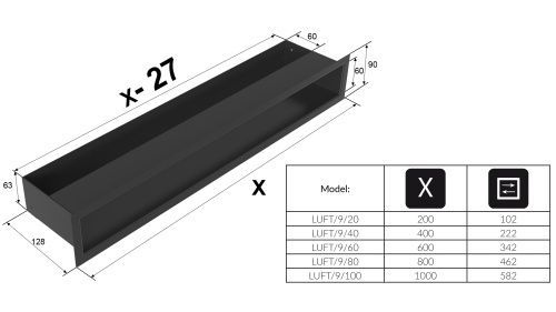 Kamin Luftgitter Lüftungsgitter 4 Farben 9x40 cm Luftleiste Warmluftgitter Kamin