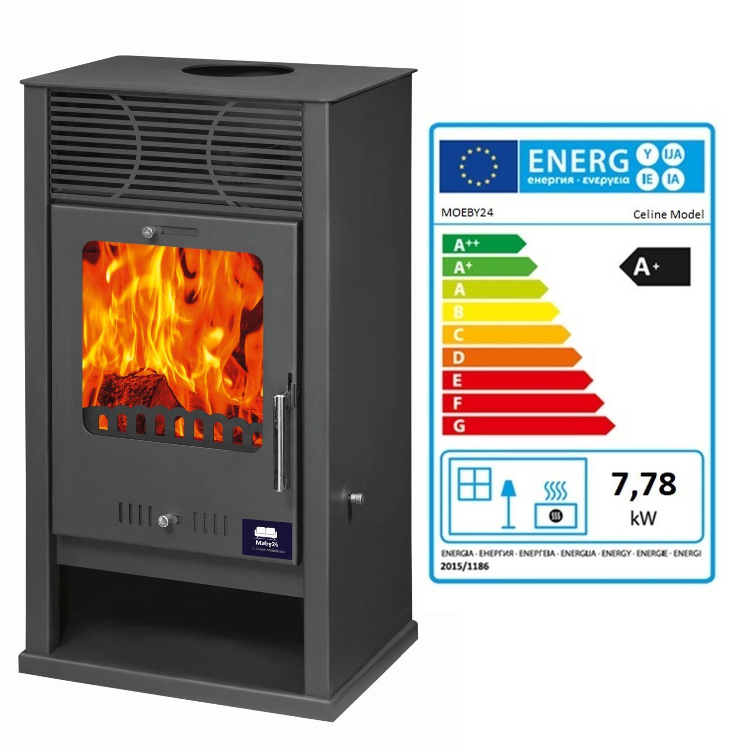 Kamin Ofen Kaminofen Anthrazit 150mm Rauchrohr 7,8 KW BimSchV 1-2 EEK A+ Celine