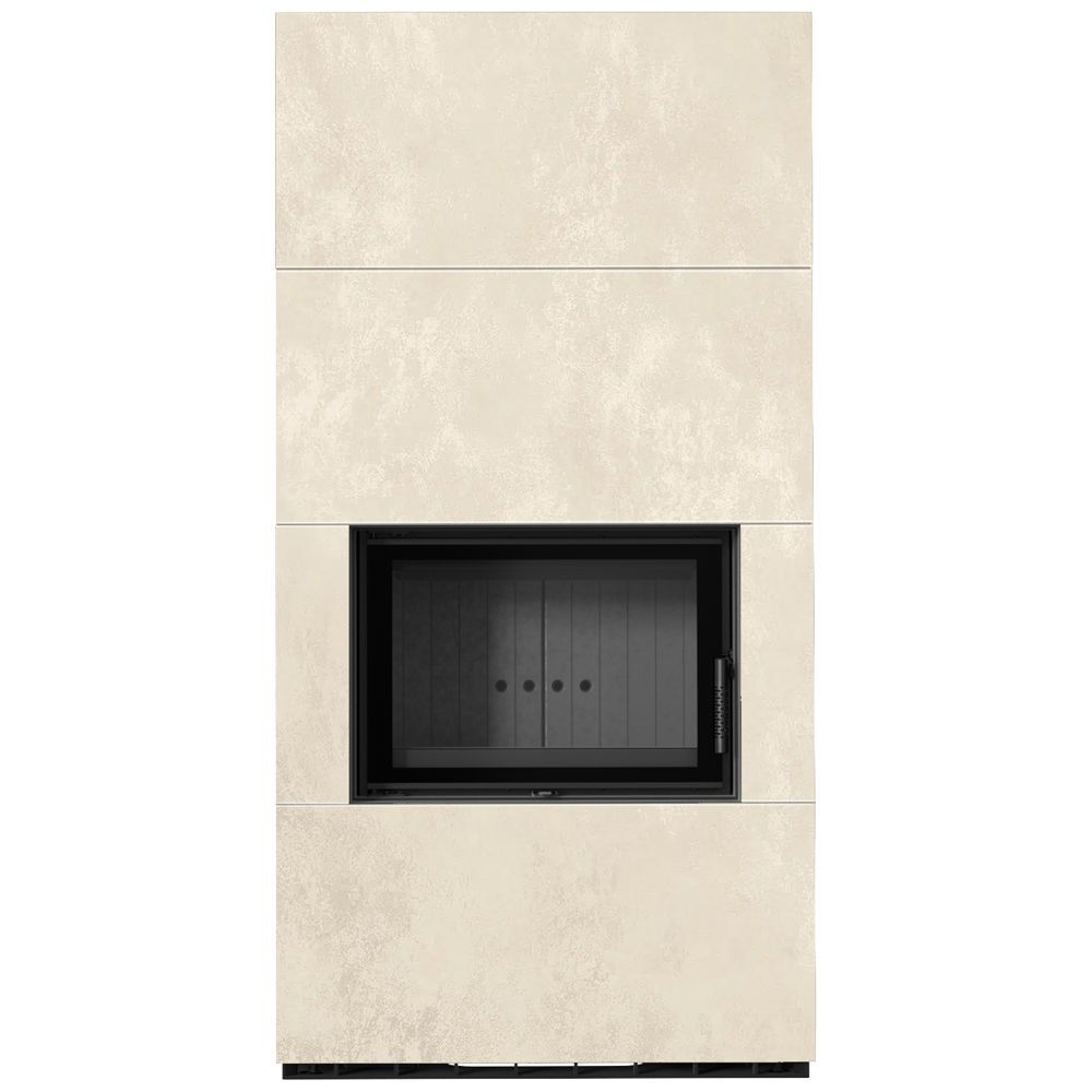 Kaminbausatz KRATKI FLOKI BOX 8 kW Ø 160 Quarzsinter OXIDE BIANCO schwarz Verkleidun