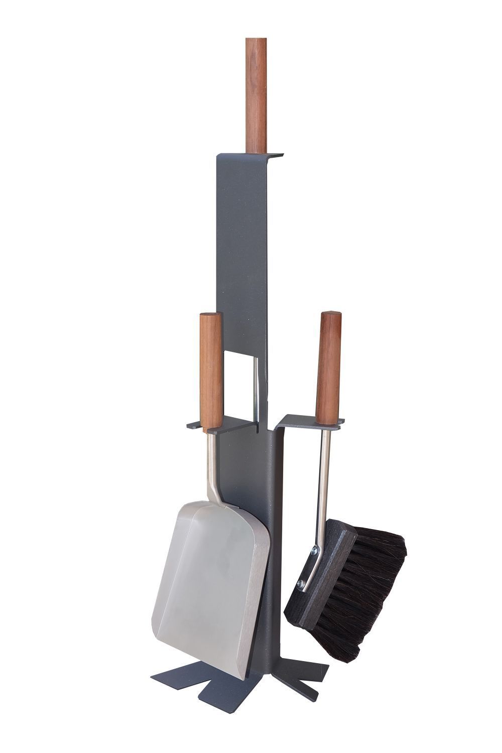 Lienbacher Kaminbesteck Kamingarnitur 3-teilig anthrazit beschichtet mit Nussholzgriffen
