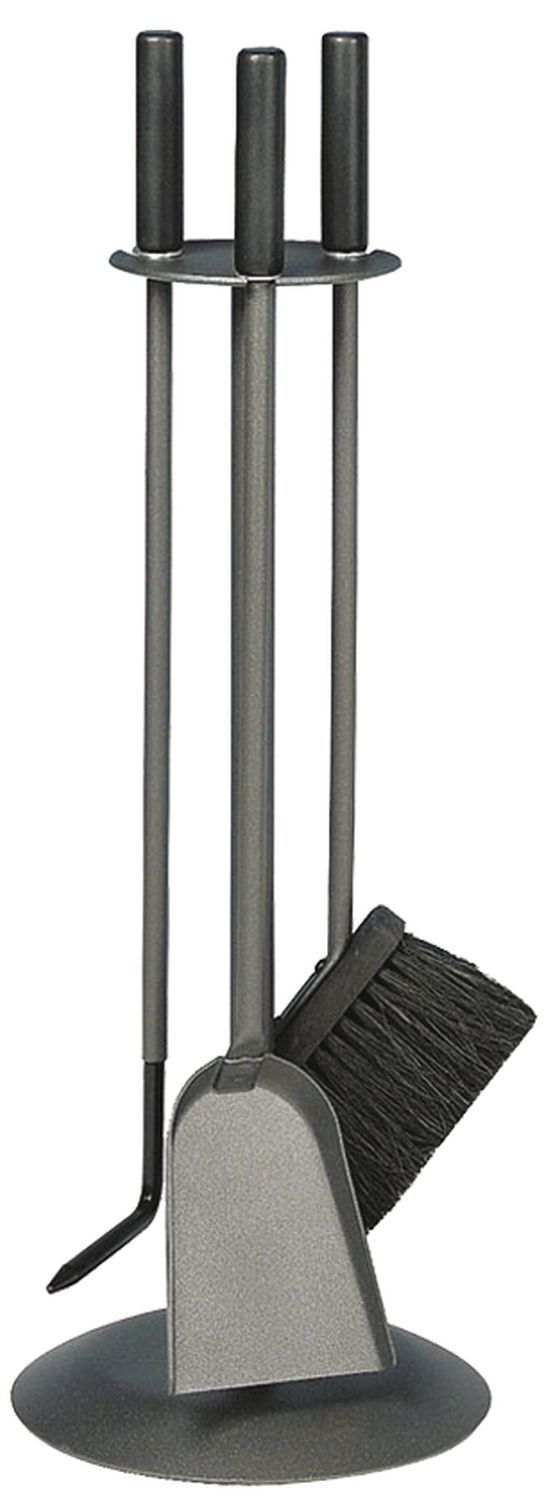 Lienbacher Kaminbesteck Kamingarnitur Kaminzubehör anthrazit beschichtet Holzgriffe schwarz