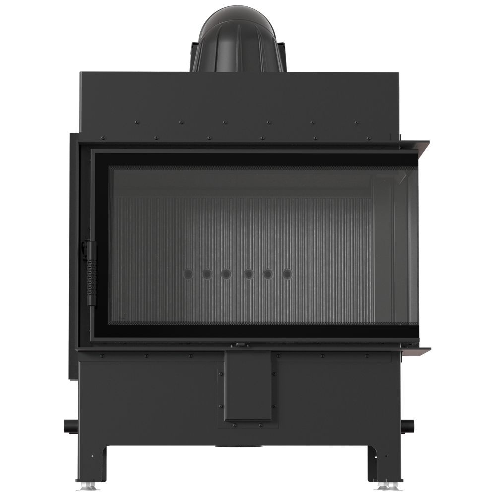Kamineinsatz aus Stahl KRATKI LUCY rechts 14 kW Ø 200 schwarz Verkleidung