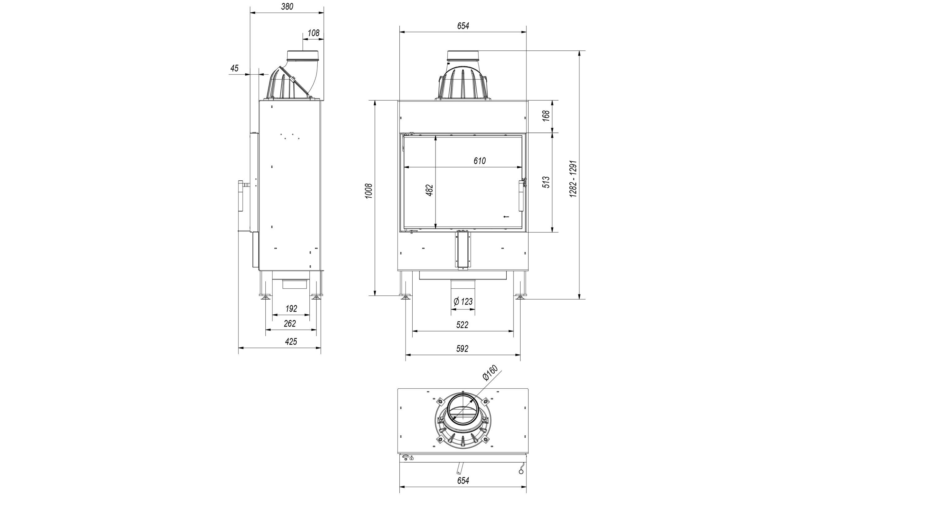 Kamineinsatz aus Stahl KRATKI LUCY SLIM 8 kW Ø 160 schwarz Verkleidung
