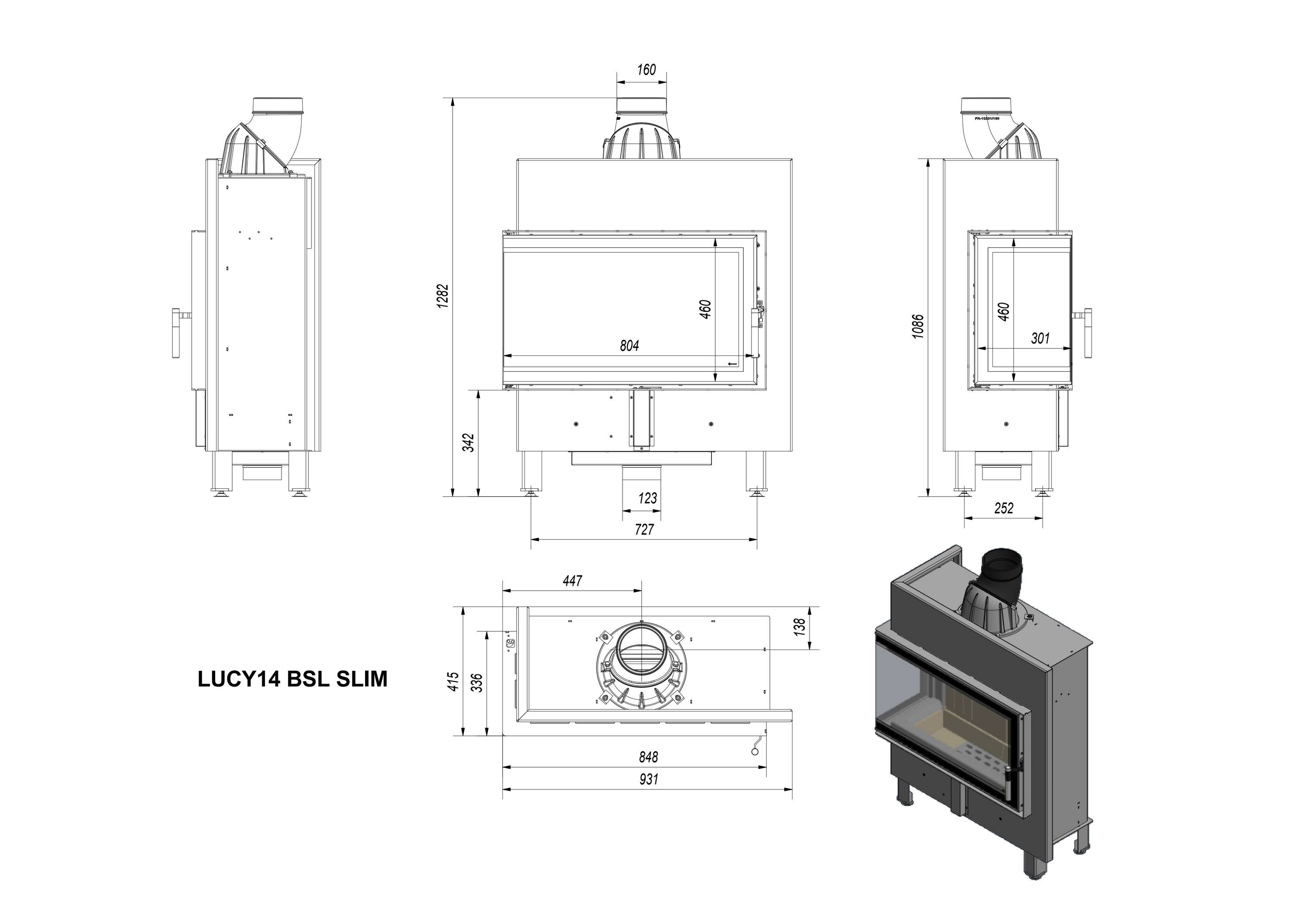 Kamineinsatz aus Stahl KRATKI LUCY SLIM links 10 kW Ø 160