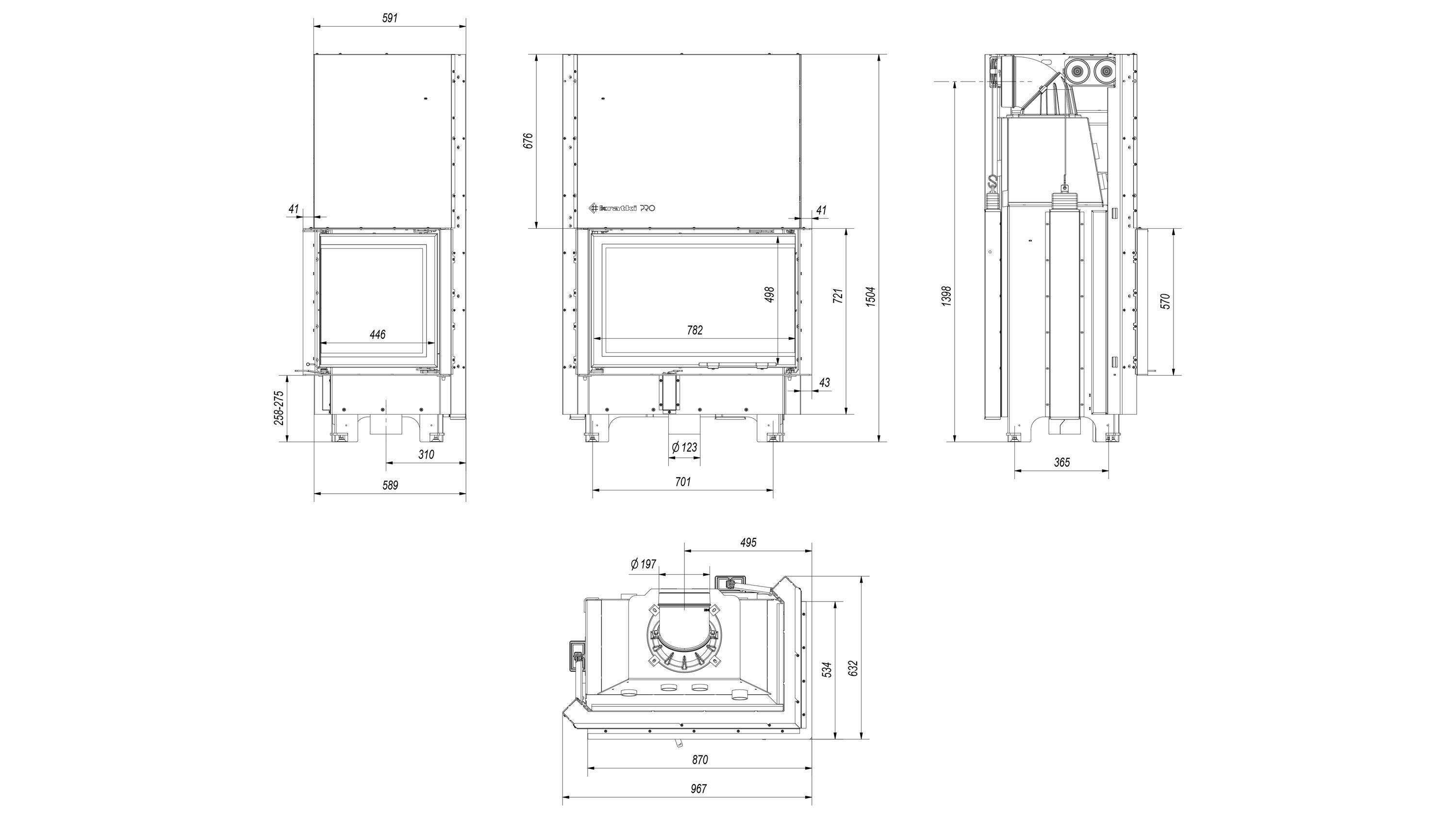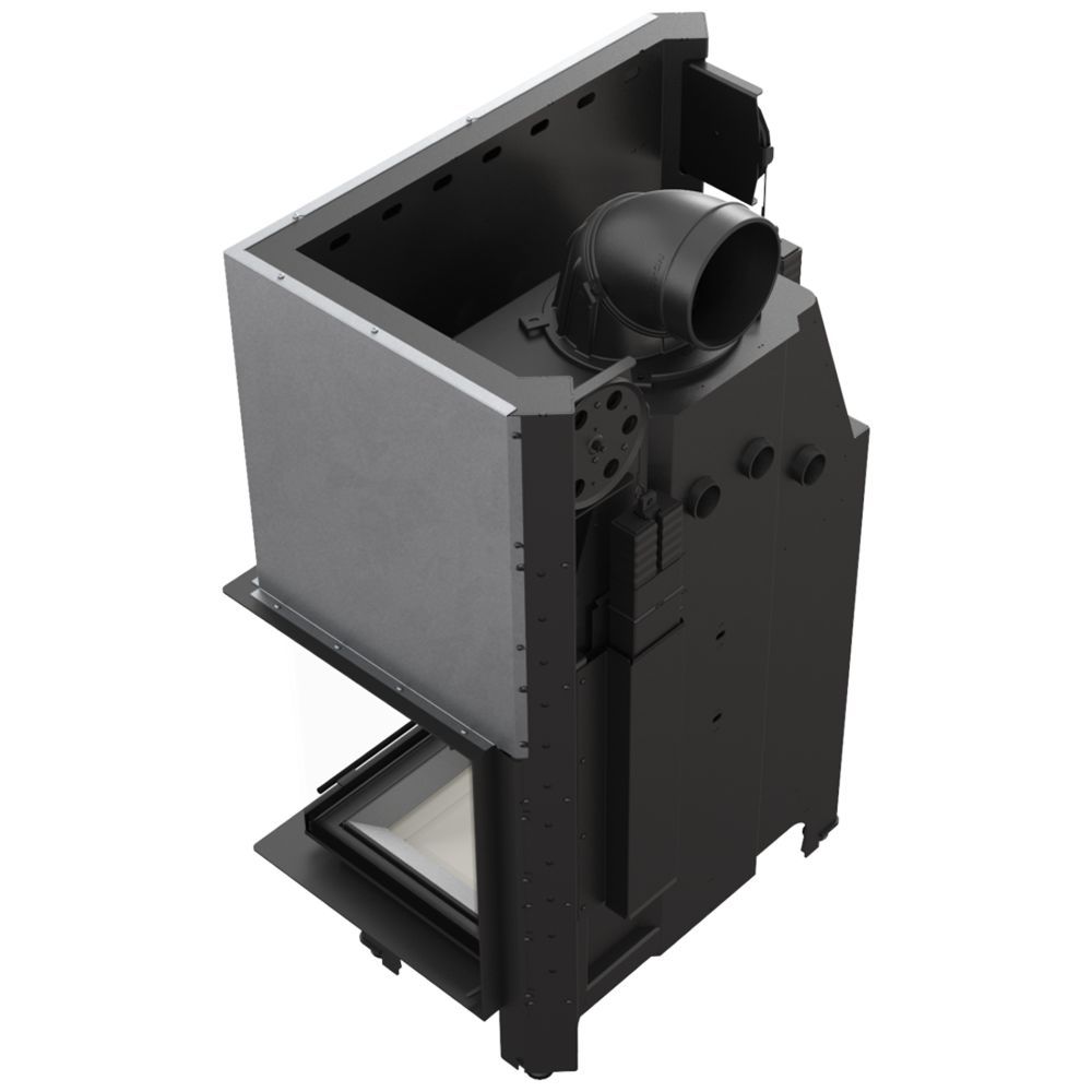 Kamineinsatz aus Stahl KRATKI MBA rechts 17 kW Ø 200 mit Schiebetür gebogenes Glas