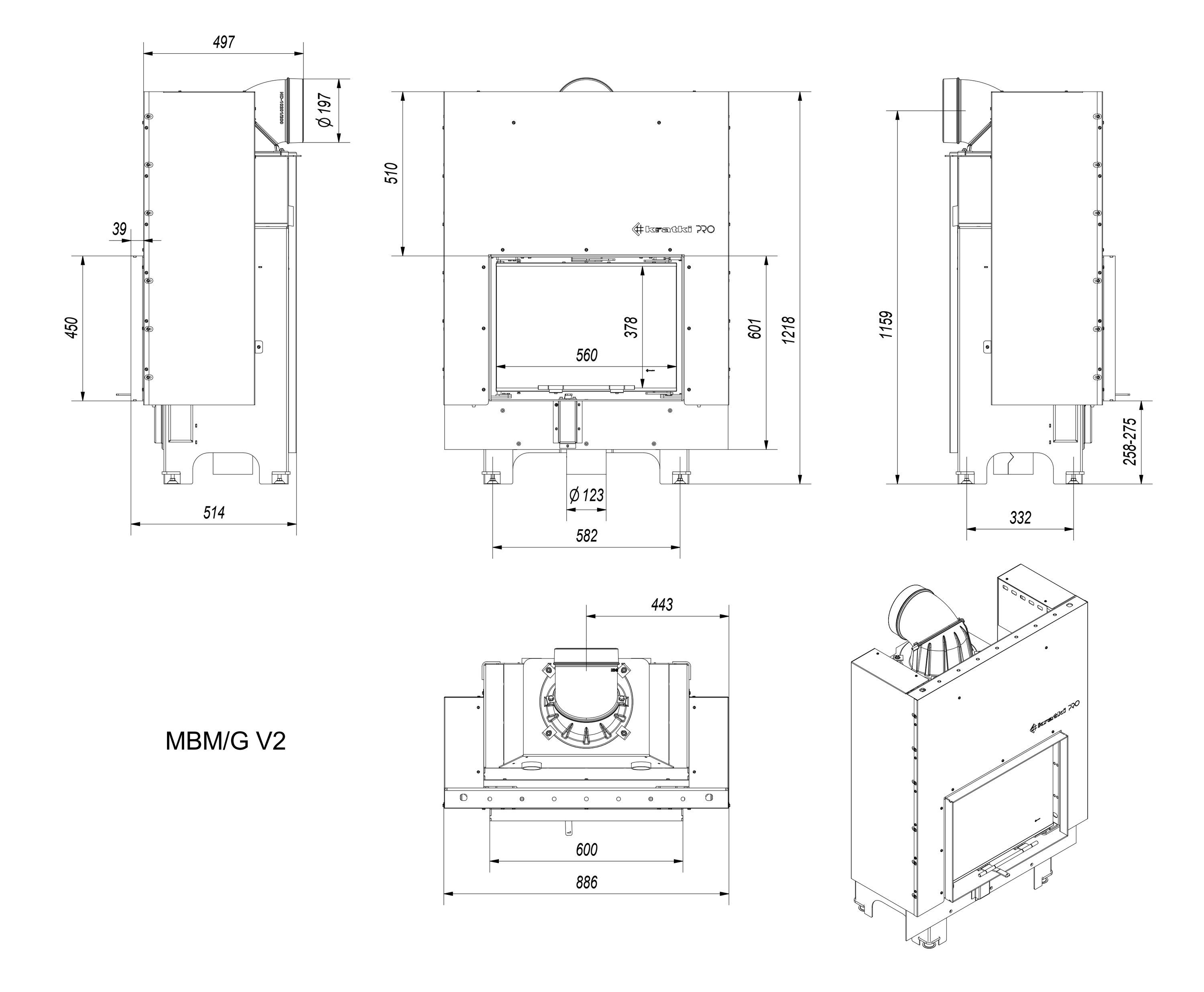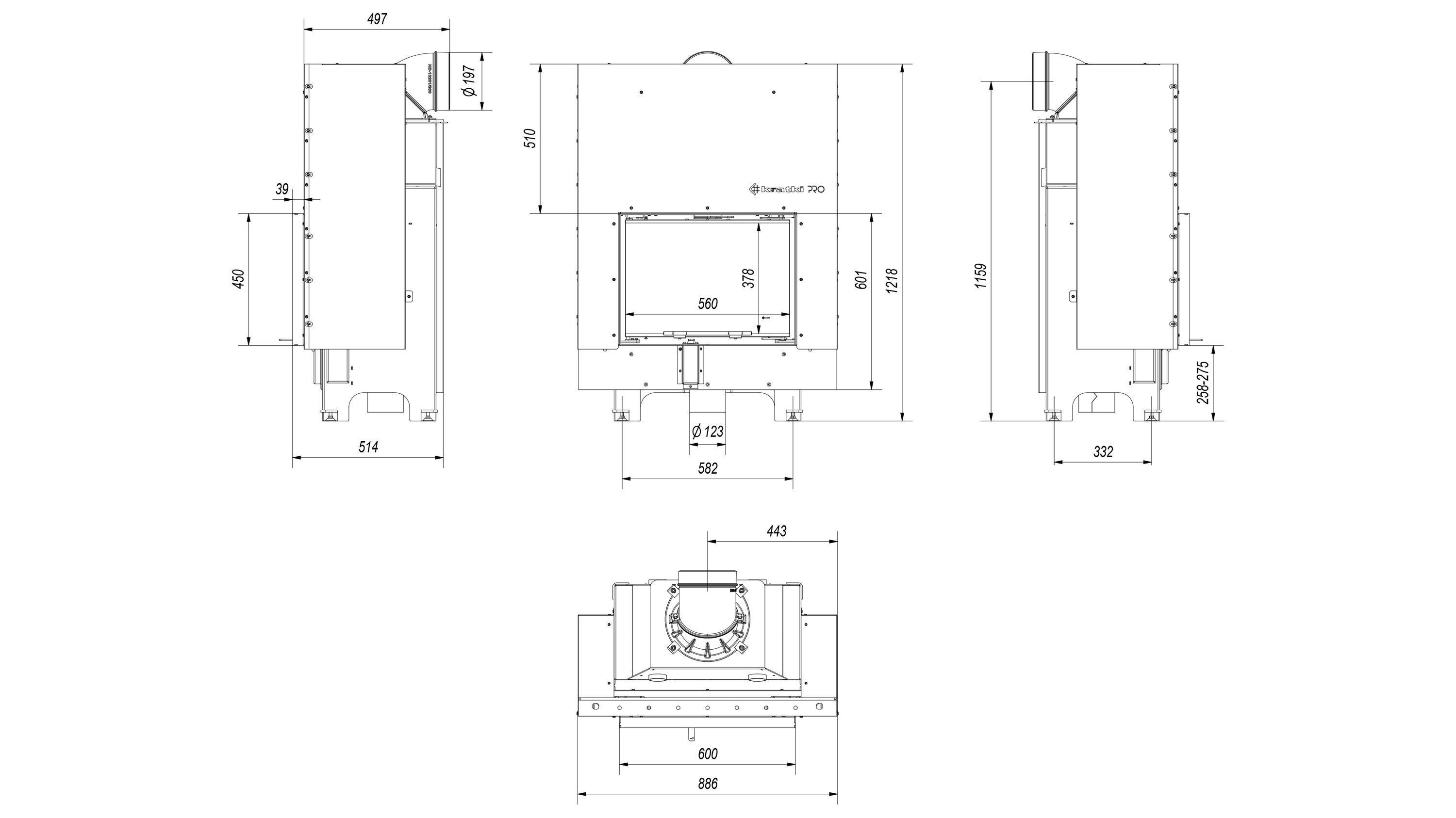 Kamineinsatz aus Stahl KRATKI MBM 10 kW Ø 200 mit Schiebetür