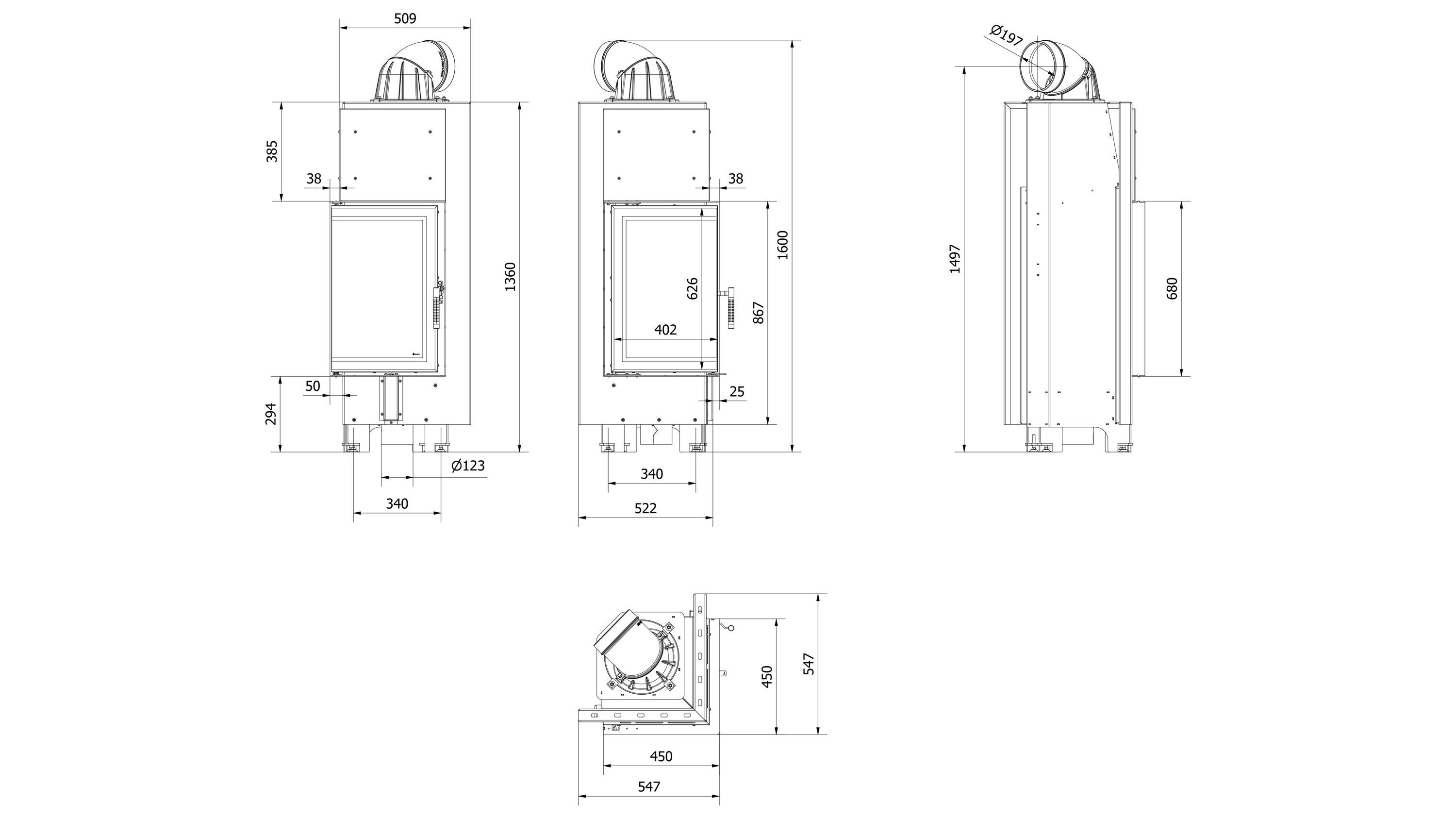 Kamineinsatz aus Stahl KRATKI MBN links 10 kW Ø 200 mit Türfeder
