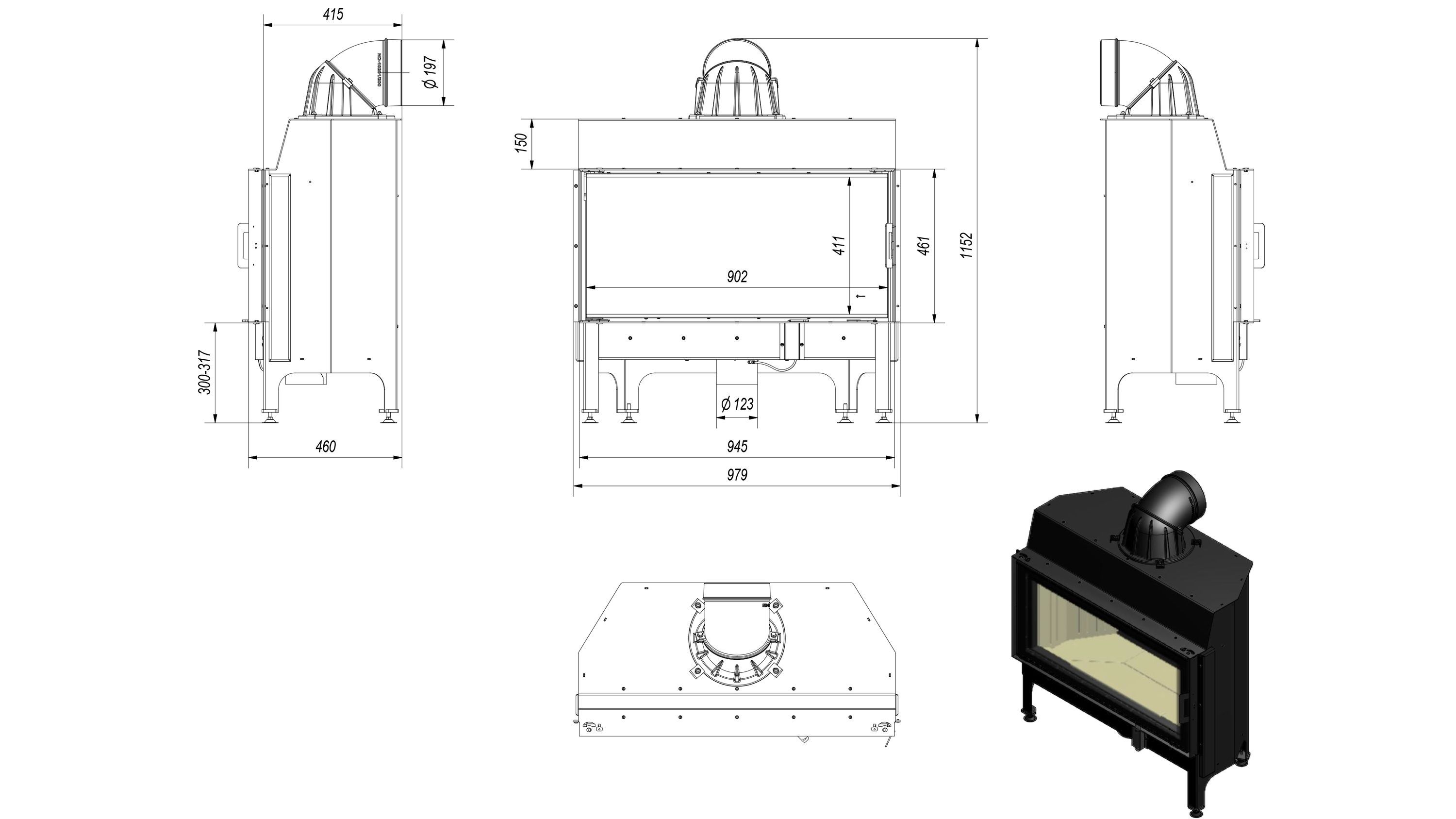 Kamineinsatz aus Stahl KRATKI NADIA 14 kW Ø 200