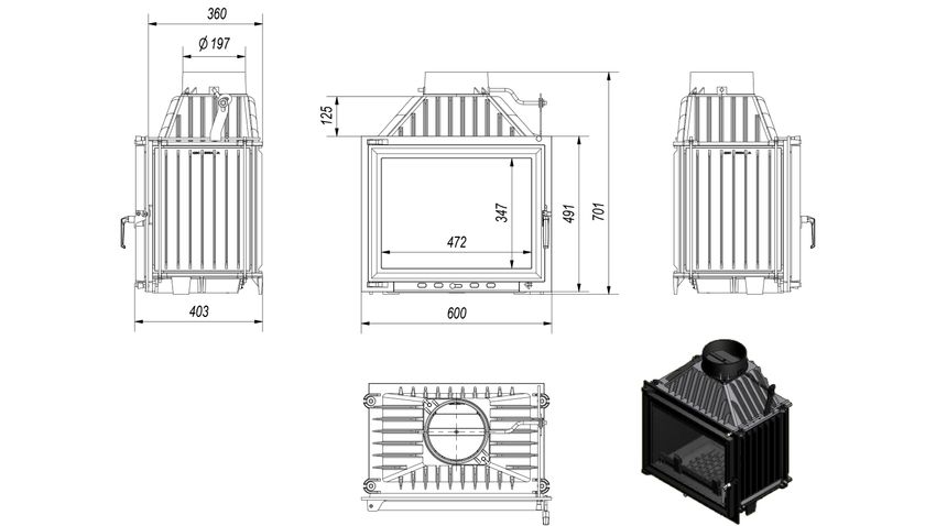 Kamineinsatz Gusseisen KRATKI MAJA 8 kW Ø 200