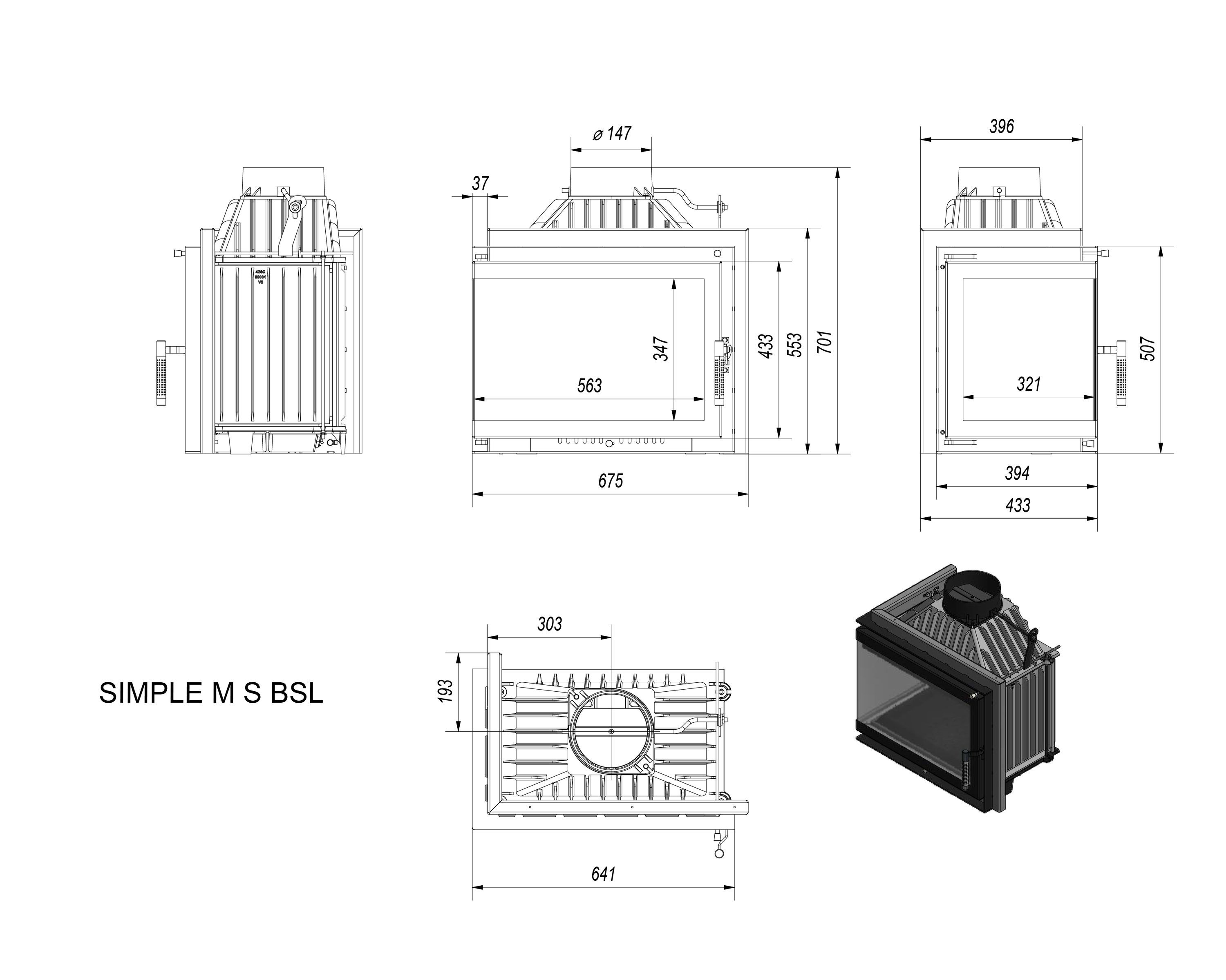 Kamineinsatz Gusseisen KRATKI SIMPLE links 8 kW Ø 150