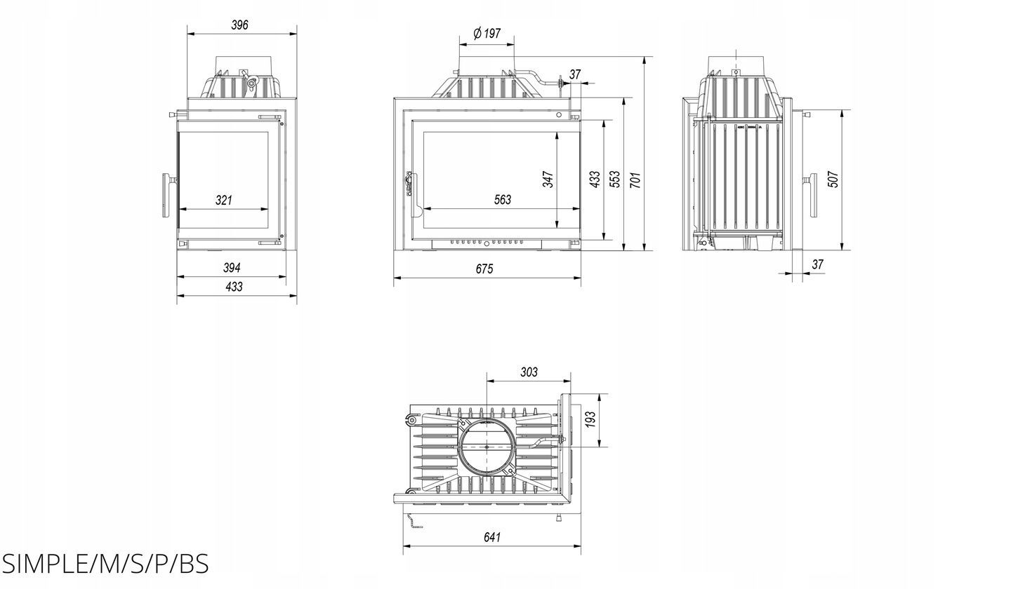 Kamineinsatz Gusseisen KRATKI SIMPLE rechts 8 kW Ø 200 Einbausatz 2